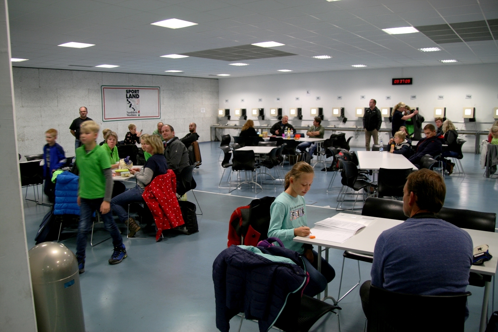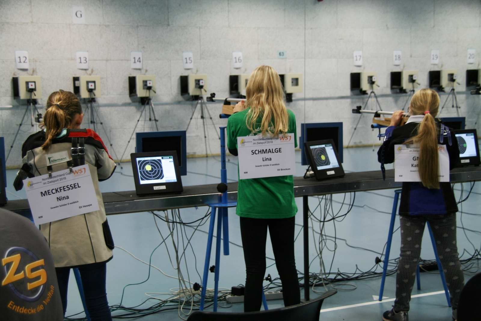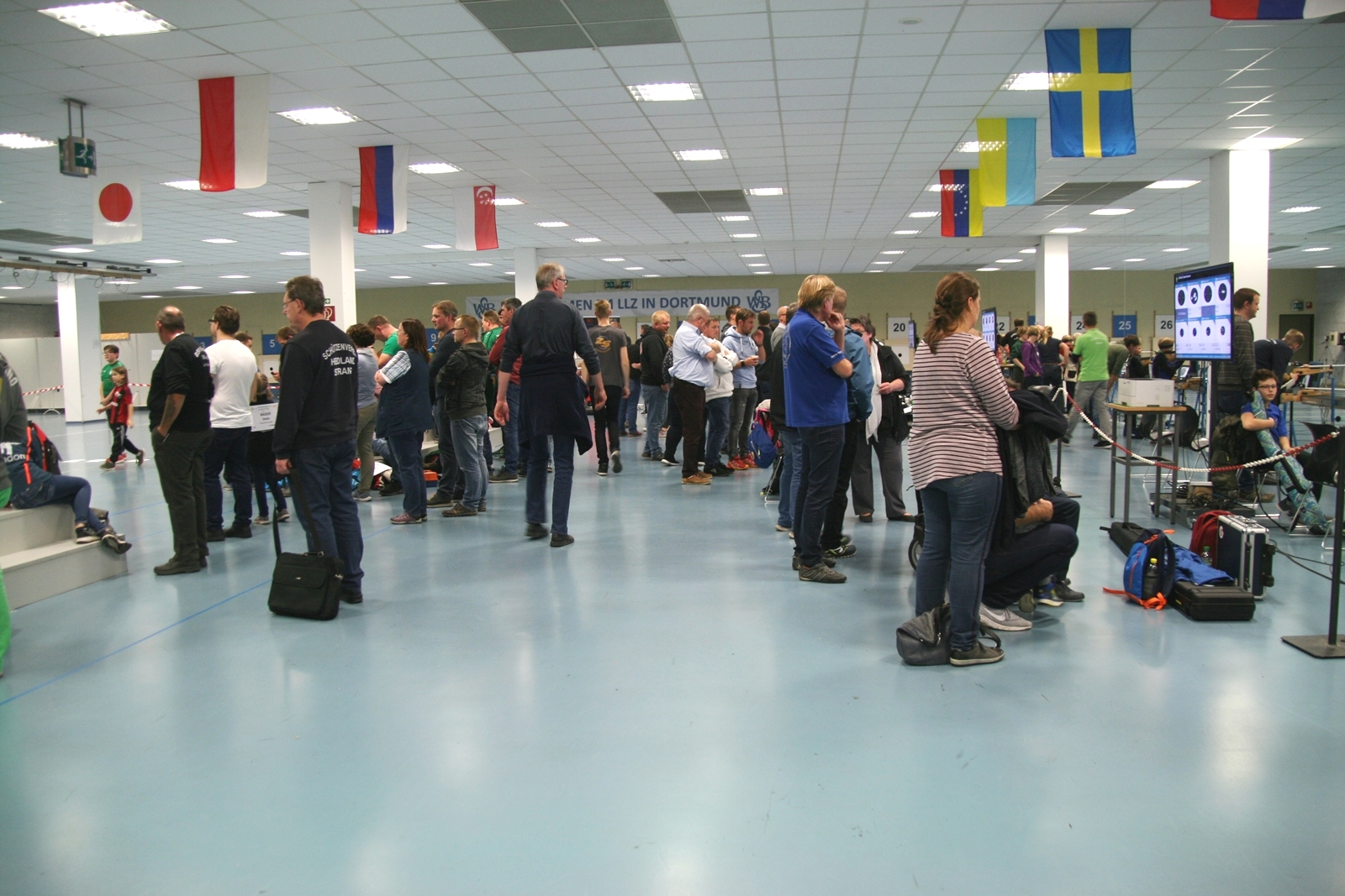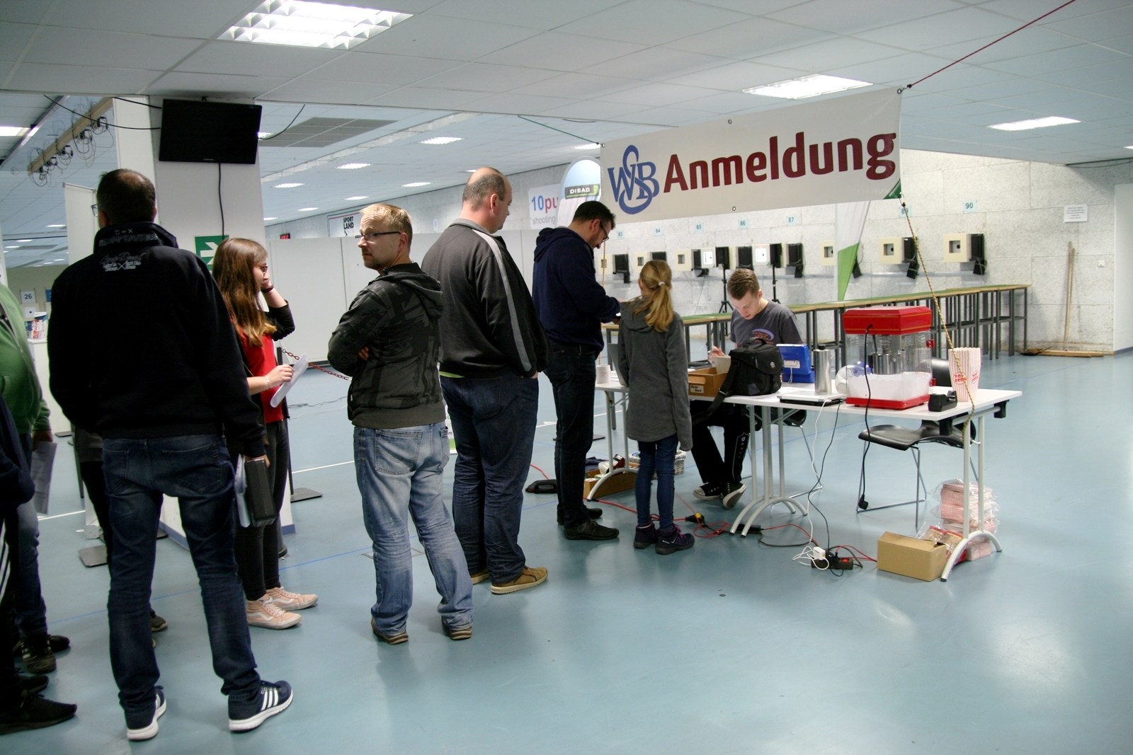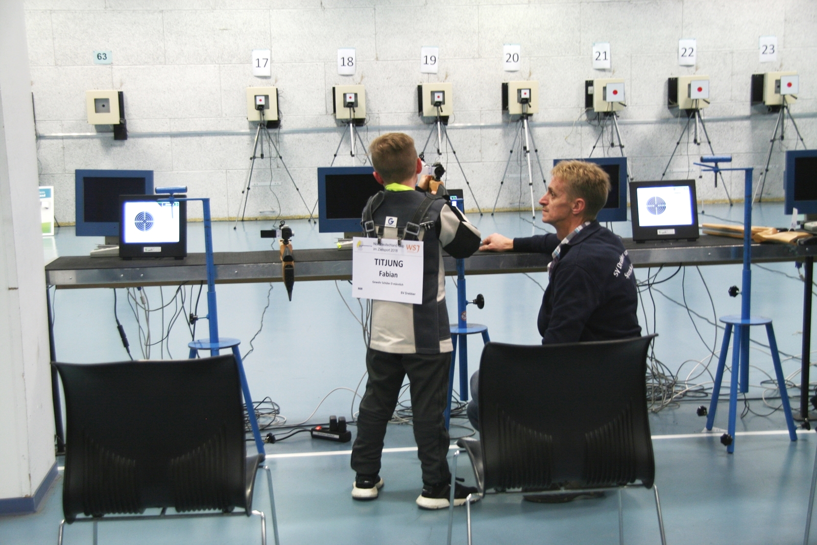 Es waren 32 Stände jeweils für Lichtpunktgewehre und Lichtpunktpistolen aufgebaut, da zu gab es einen gut übersehbaren Anmeldestand. Um 11:0 Uhr war der erste Start, vor jedem der sechs Starts mit 20 Wertungsschüssen, wurde mit Landesjugendleiterin Tatjana Matuschek und ihren Helfern ein „Aufwärmspiel“ mit den jungen Sportschützen durchgeführt, anschließend 10 Wertungsschüsse, vor den weiteren 10 Schüssen eine Bewegungsaufgabe, nach dem Wettkampf nochmals eine Bewegungsaufgabe als Abschluß.