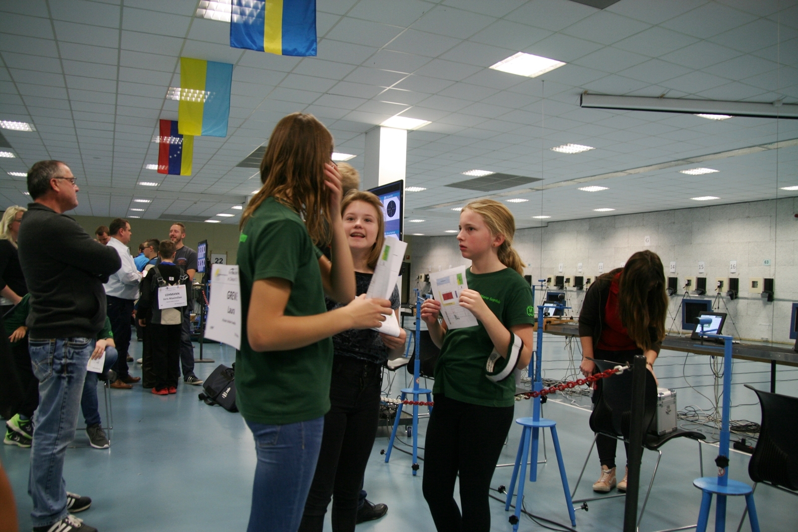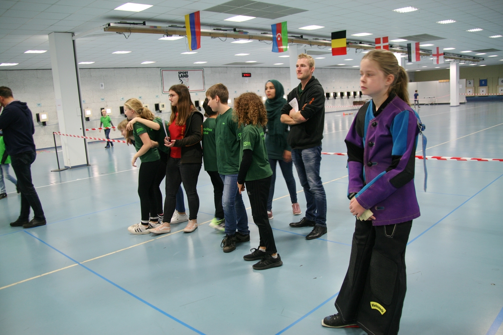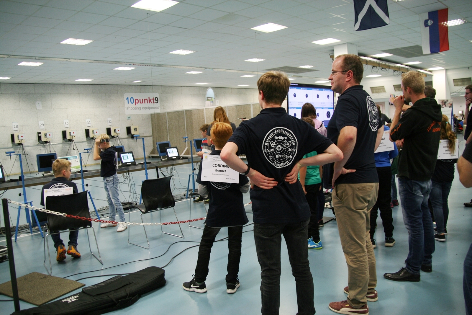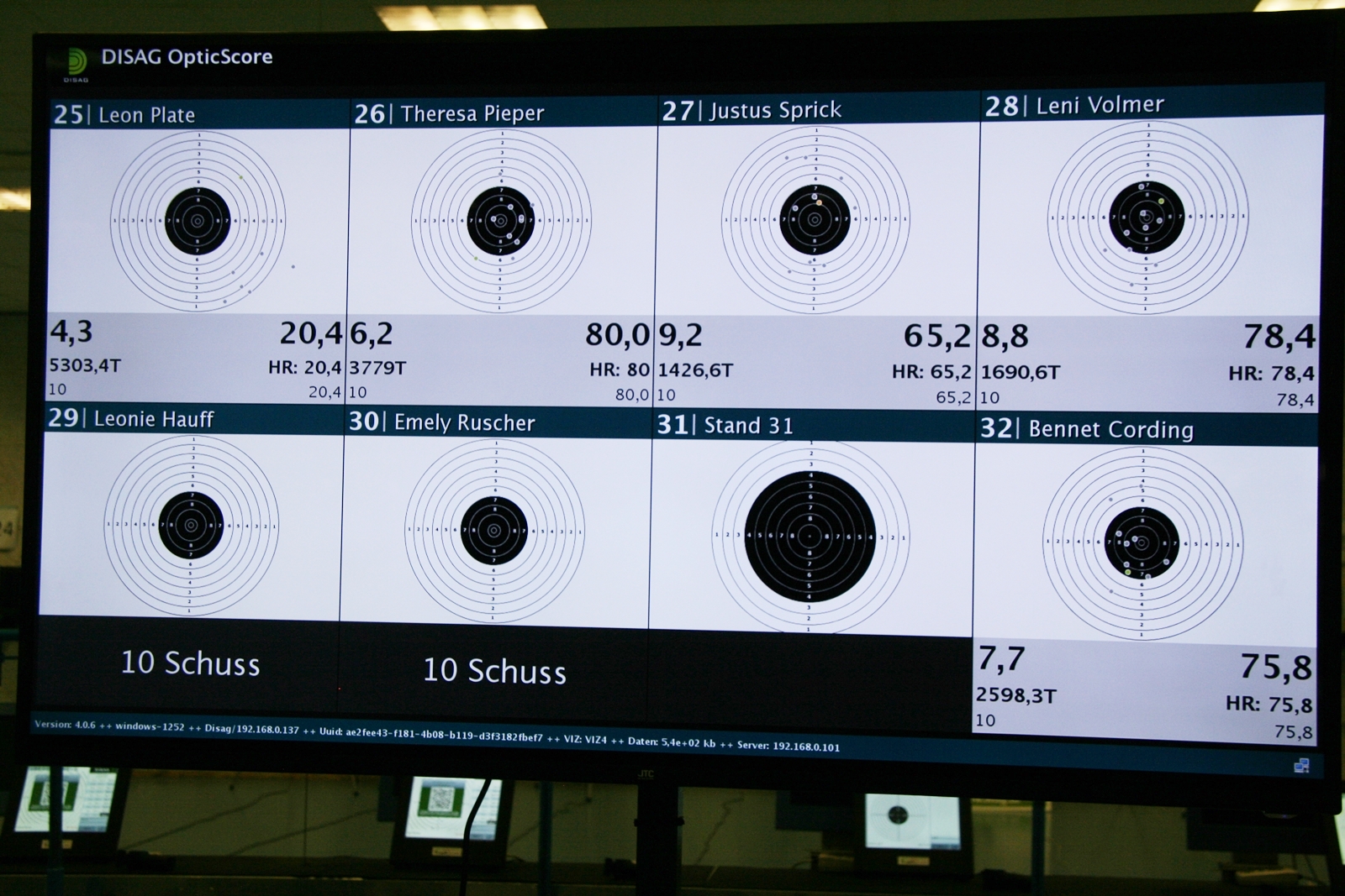 Es waren 32 Stände jeweils für Lichtpunktgewehre und Lichtpunktpistolen aufgebaut, da zu gab es einen gut übersehbaren Anmeldestand. Um 11:0 Uhr war der erste Start, vor jedem der sechs Starts mit 20 Wertungsschüssen, wurde mit Landesjugendleiterin Tatjana Matuschek und ihren Helfern ein „Aufwärmspiel“ mit den jungen Sportschützen durchgeführt, anschließend 10 Wertungsschüsse, vor den weiteren 10 Schüssen eine Bewegungsaufgabe, nach dem Wettkampf nochmals eine Bewegungsaufgabe als Abschluß.