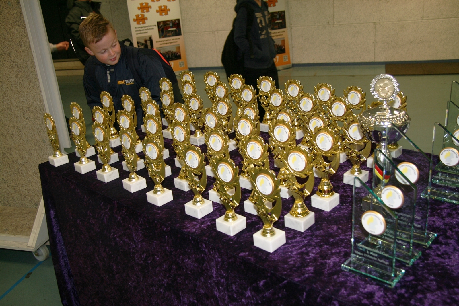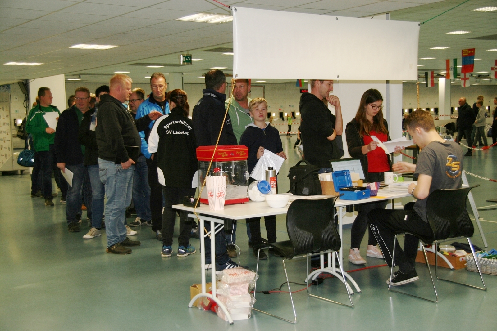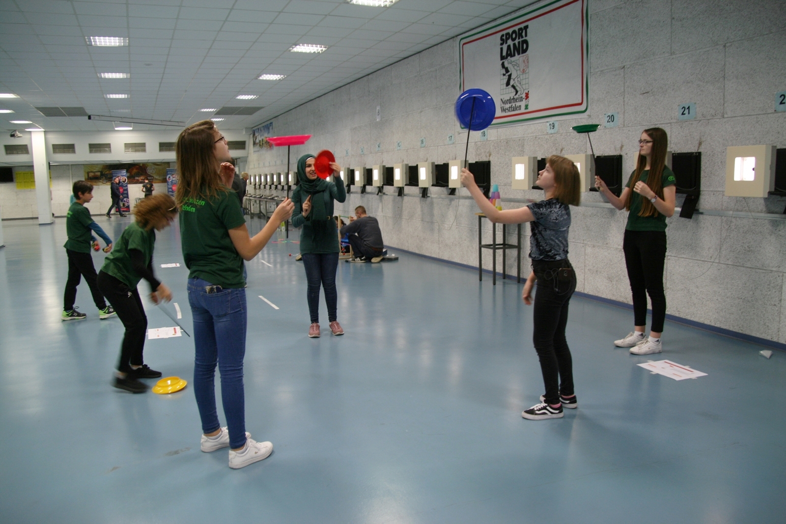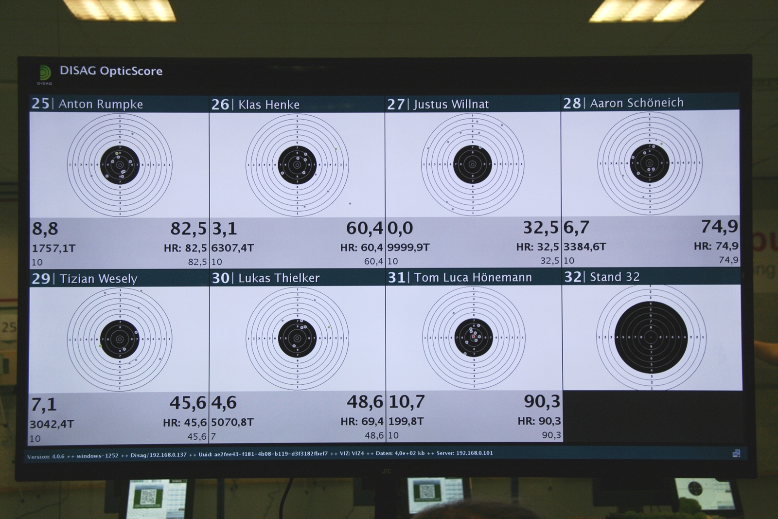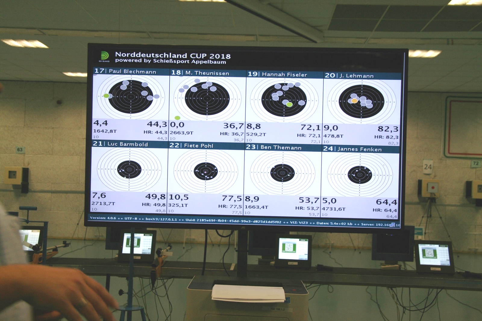 Es waren 32 Stände jeweils für Lichtpunktgewehre und Lichtpunktpistolen aufgebaut, da zu gab es einen gut übersehbaren Anmeldestand. Um 11:0 Uhr war der erste Start, vor jedem der sechs Starts mit 20 Wertungsschüssen, wurde mit Landesjugendleiterin Tatjana Matuschek und ihren Helfern ein „Aufwärmspiel“ mit den jungen Sportschützen durchgeführt, anschließend 10 Wertungsschüsse, vor den weiteren 10 Schüssen eine Bewegungsaufgabe, nach dem Wettkampf nochmals eine Bewegungsaufgabe als Abschluß.