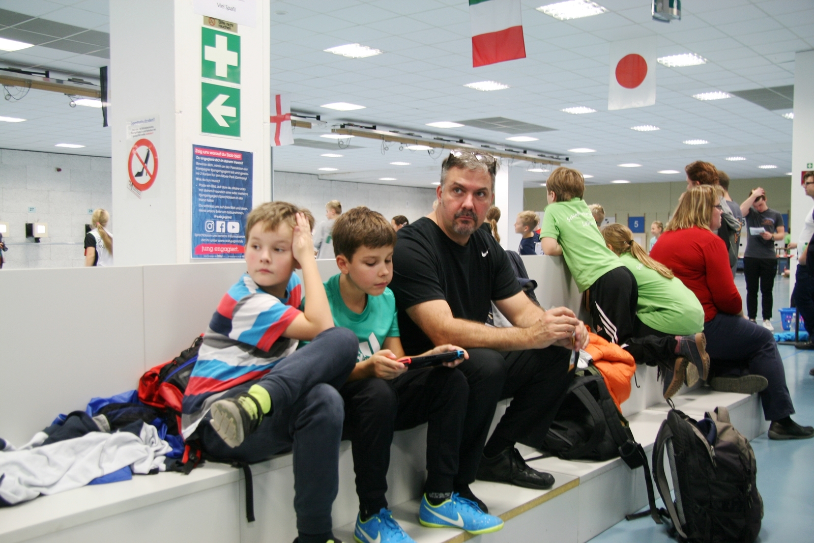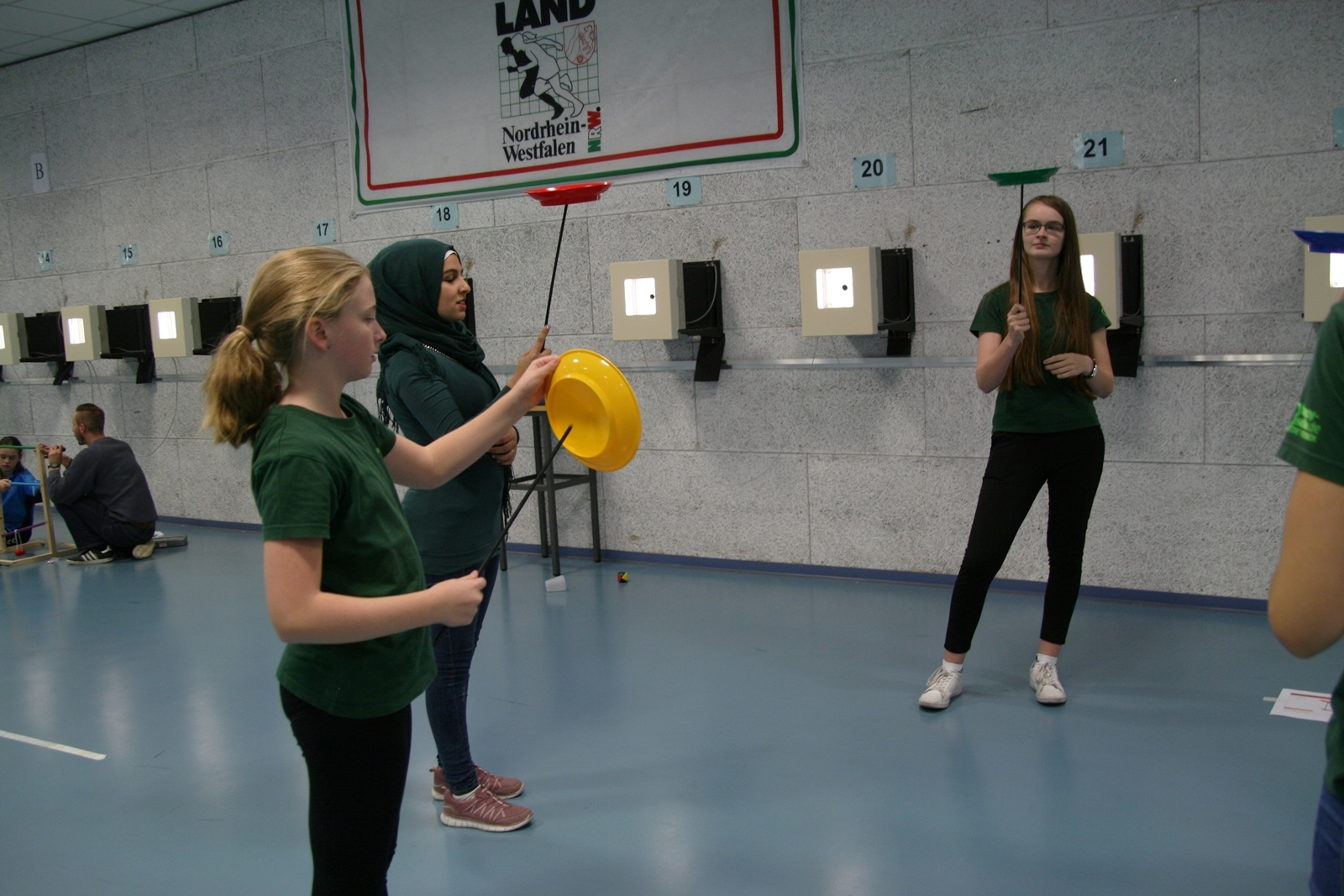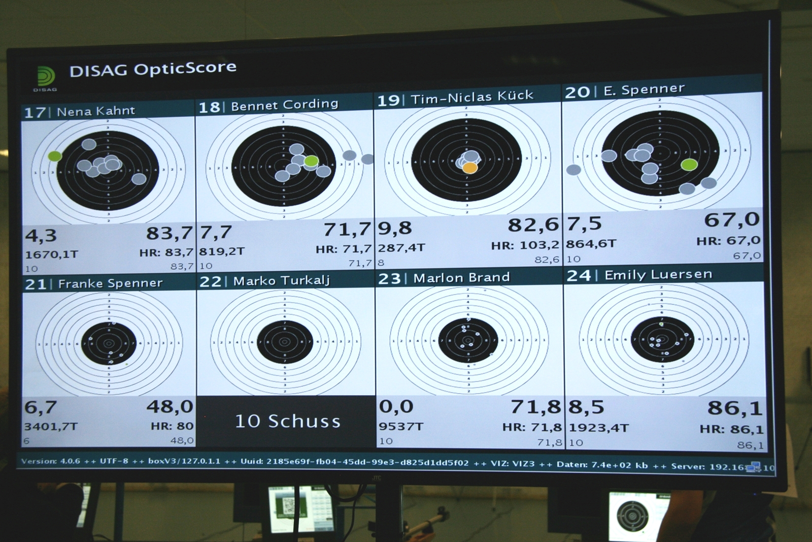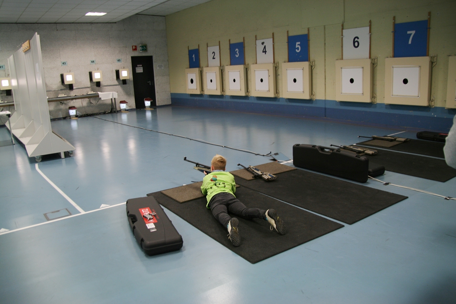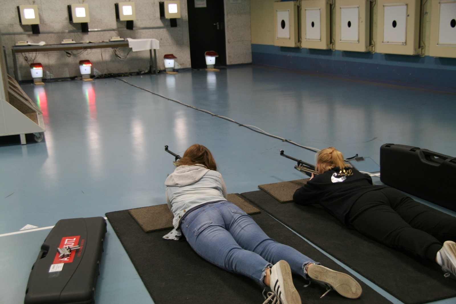Es waren 32 Stände jeweils für Lichtpunktgewehre und Lichtpunktpistolen aufgebaut, da zu gab es einen gut übersehbaren Anmeldestand. Um 11:0 Uhr war der erste Start, vor jedem der sechs Starts mit 20 Wertungsschüssen, wurde mit Landesjugendleiterin Tatjana Matuschek und ihren Helfern ein „Aufwärmspiel“ mit den jungen Sportschützen durchgeführt, anschließend 10 Wertungsschüsse, vor den weiteren 10 Schüssen eine Bewegungsaufgabe, nach dem Wettkampf nochmals eine Bewegungsaufgabe als Abschluß.