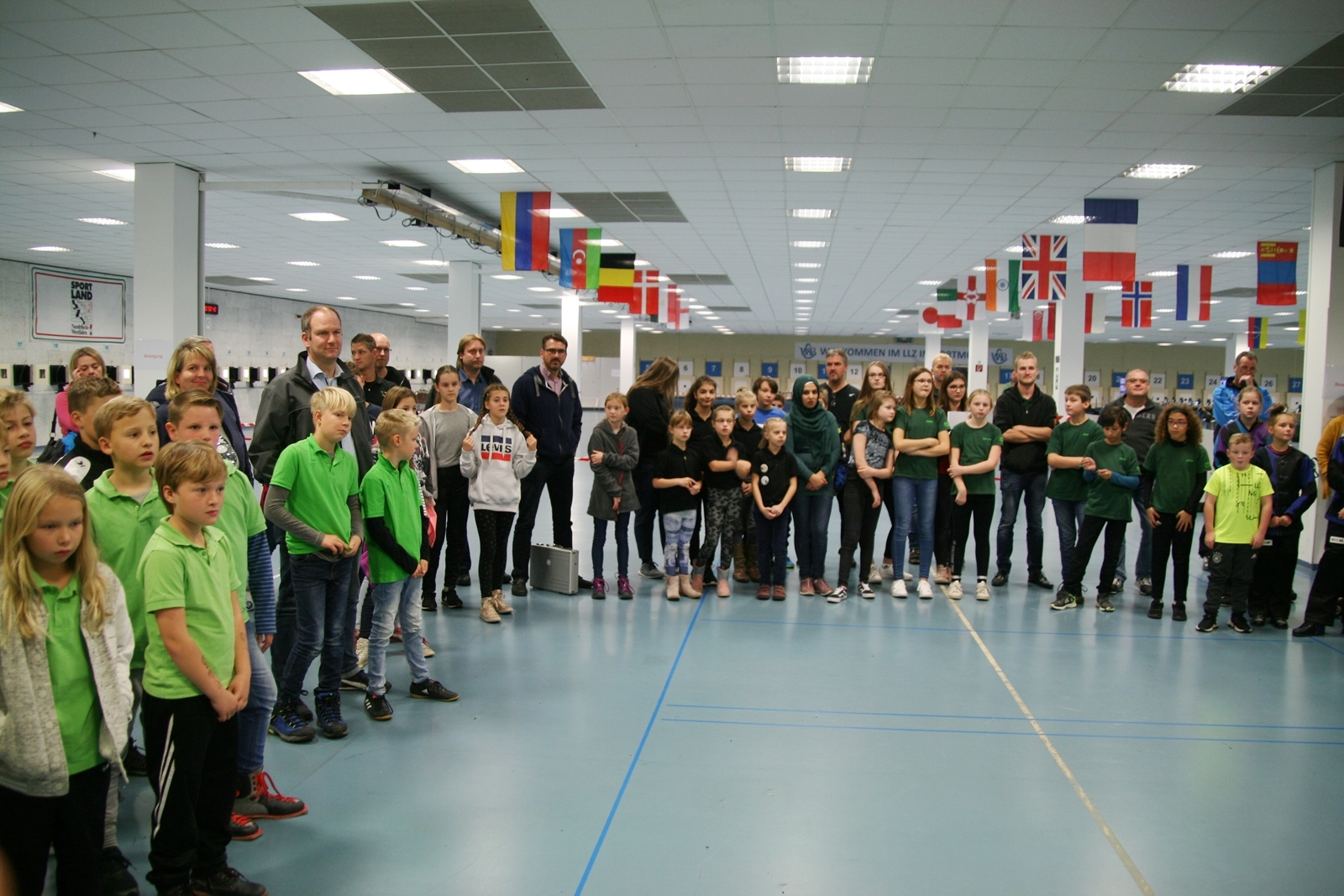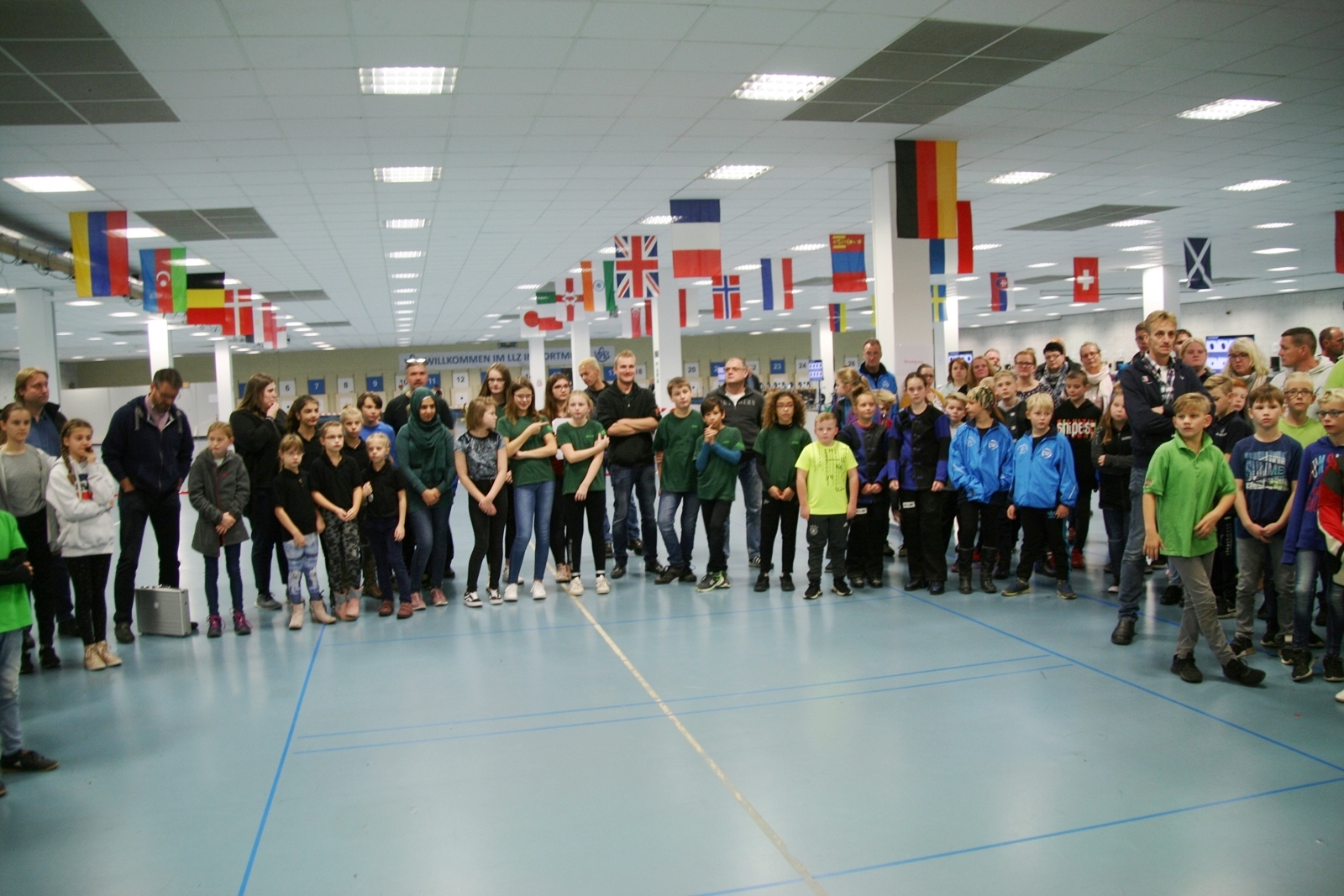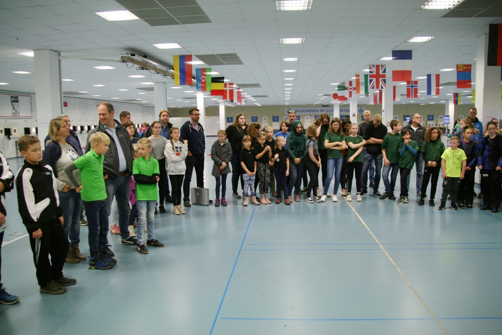 Sabine Lüttmann, Vizepräsidentin Jugend im Westfälischen Schützenbund begrüßte mit Landesjugendleiterin Tatjana Matuschek alle Teilnehmer mit ihren Betreuern und sie freuten sich, dass so viele Teilnehmer weite Strecken in Kauf genommen hatten, um hier an diesem 4. NORDDEUTSCHLAND CUP der Lichtpunktschützen teilzunehmen.
