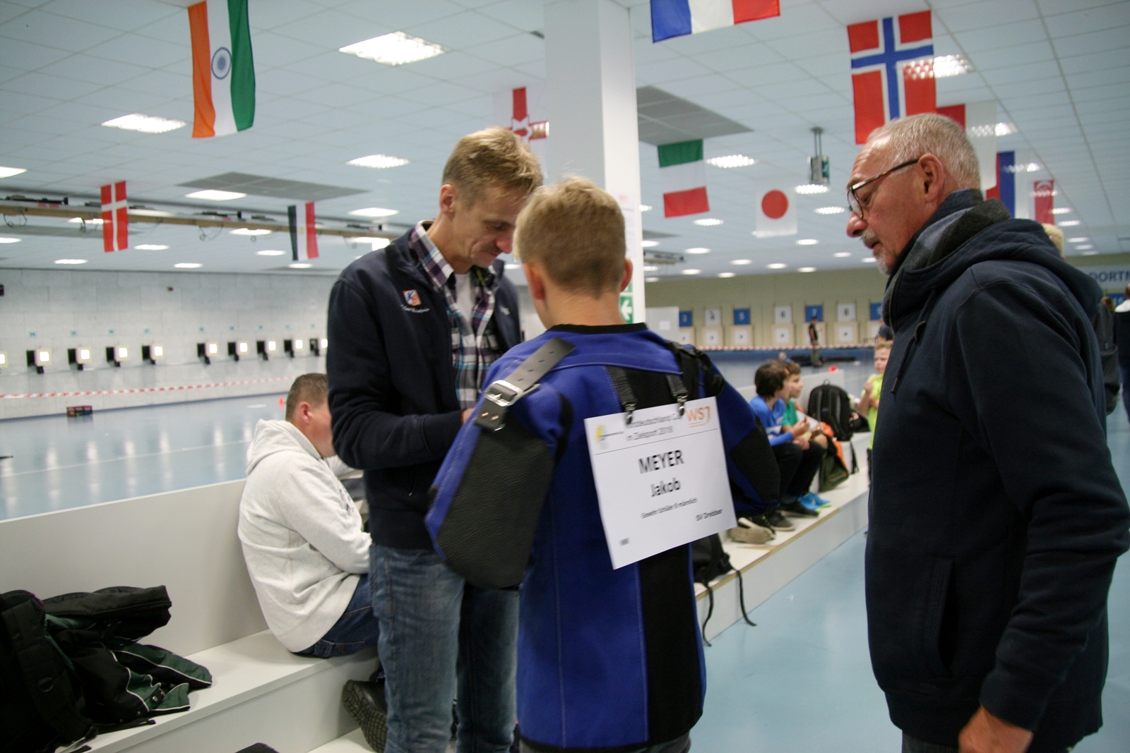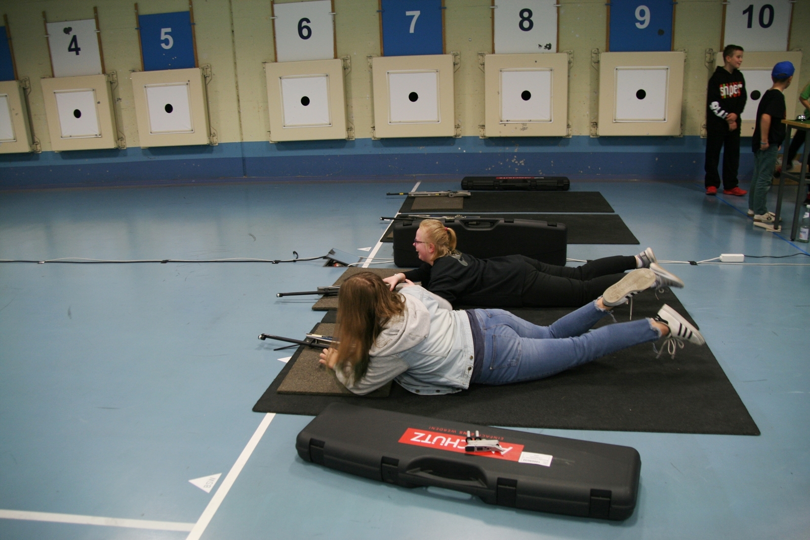Trainer, Betreuer sowie Eltern, Großeltern und Besucher waren angetan von dem großen Angebot für die Lichtpunktschützen. Das Rahmenprogramm um Wartezeiten zu überbrücken, wurde von vielen genutzt, sei es „Tellerjonglieren“, „Gummitwist“ oder auch „Dosenwerfen“. Dazu gab es einen Stand von der Firma Meython aufgebaut, hier ging es darum in möglichst schneller Zeit in zwei Liegendserien je fünf Treffer zu erzielen. Zwischen den Fünferserien mußten sie aufstehen und eine Klingel zur zweiten Serie betätigen, für den schnellsten Schützen gab es einen Pokal.