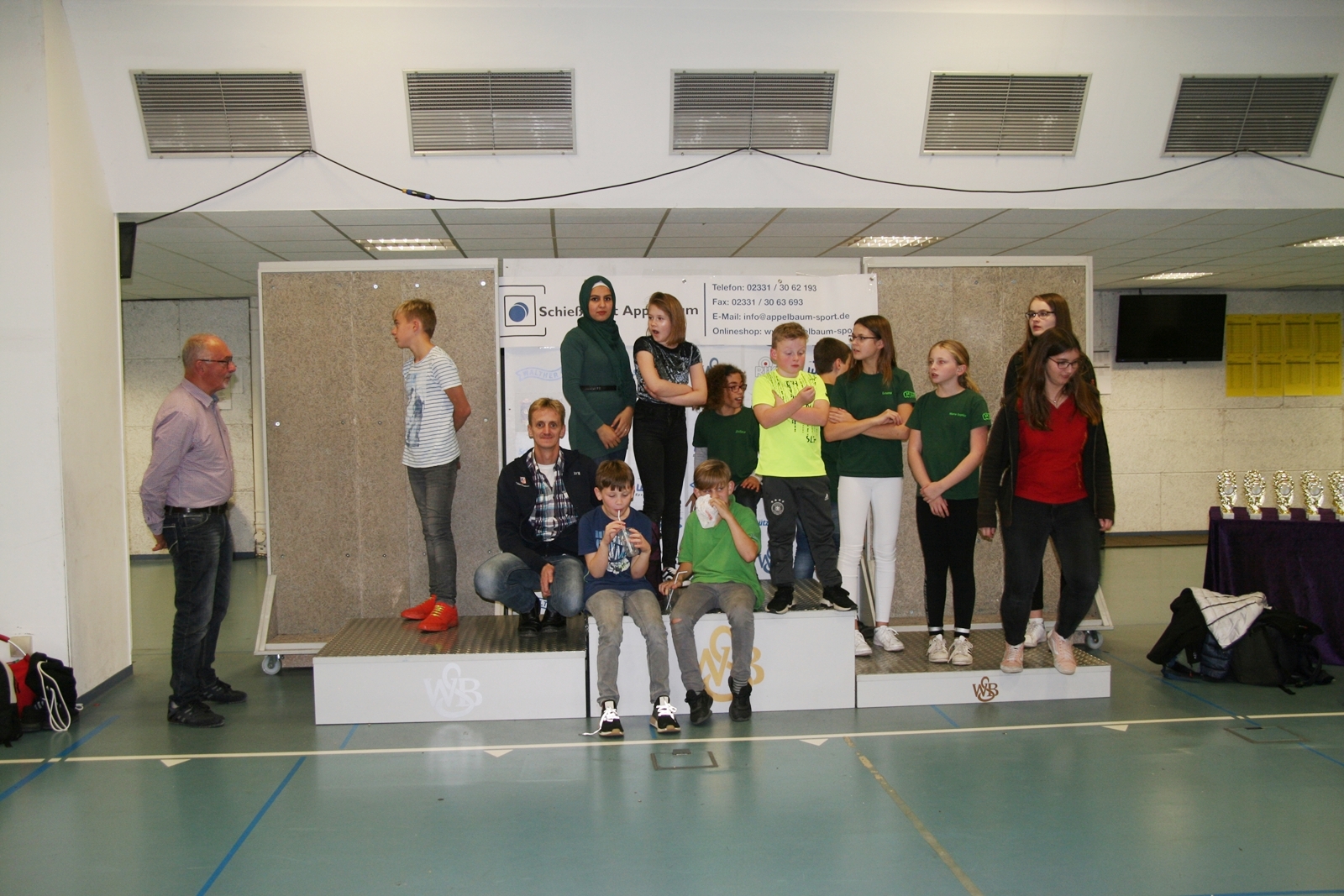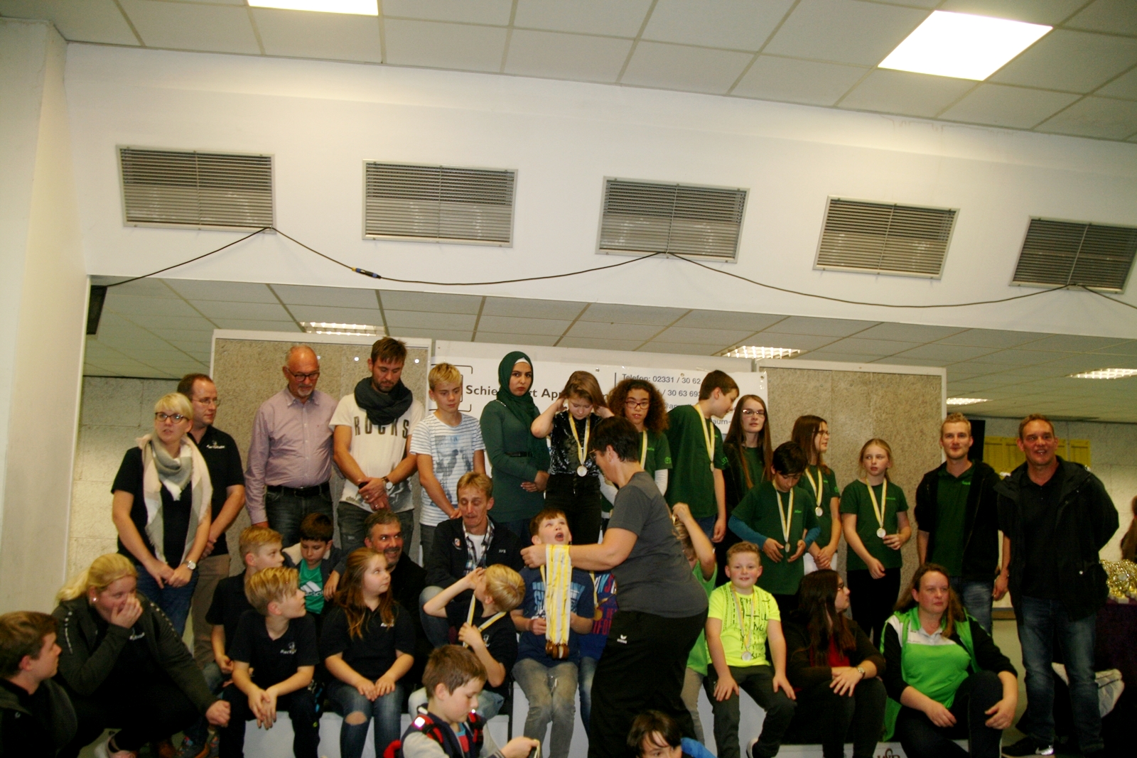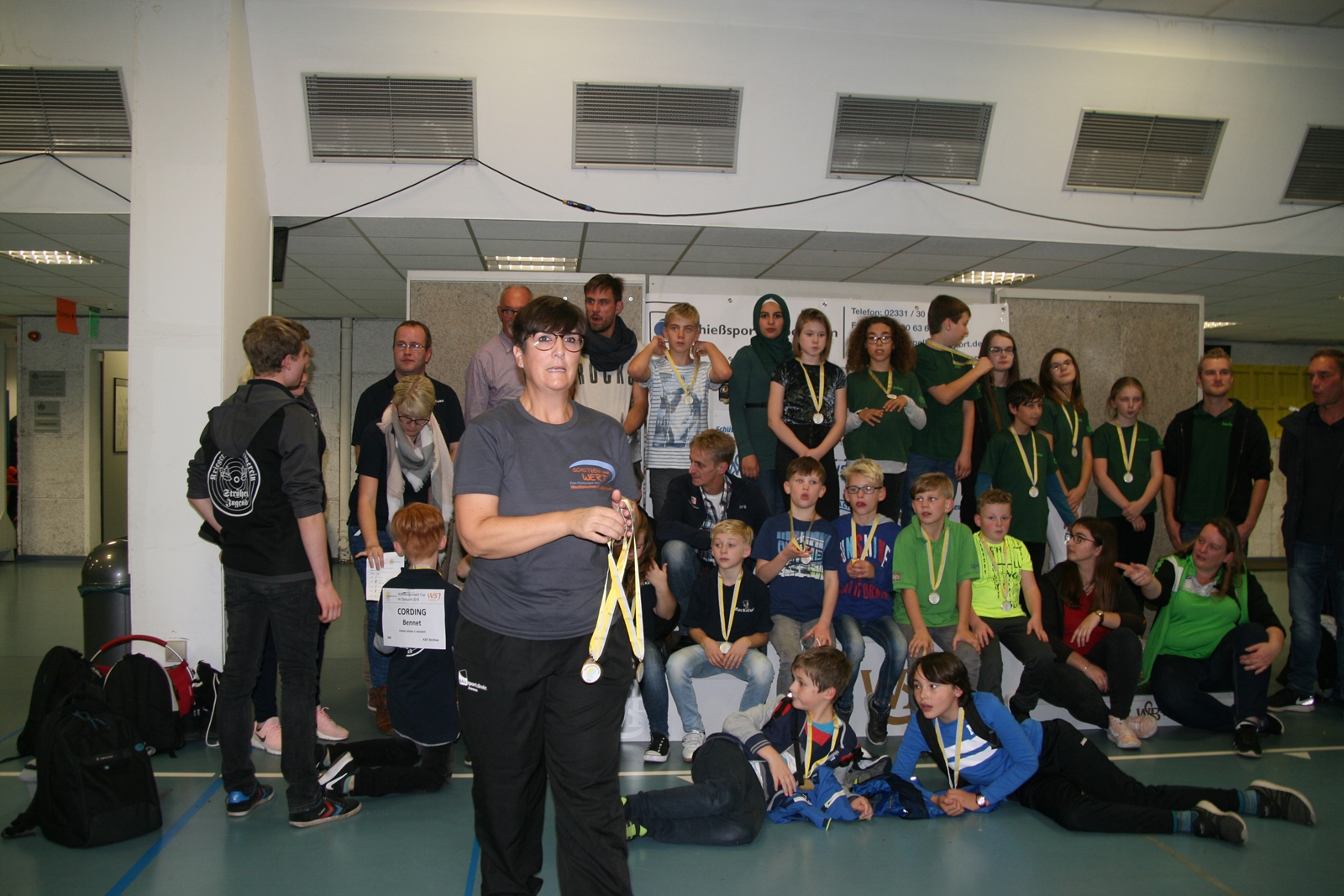 Die Siegerehrung konnten die Diepholzer Lichtpunktschützen nicht miterleben, da beim abendlichen Bezirksschützenball in Varrel die Ehrung der jungen Sportschützen von der Landesverbandsmeisterschaft und der Deutschen Meisterschaft anstand. Jeder erhielt aber vor der Abreise eine Teilnehmermedaille von Sabine Lüttmann Vizepräsidentin Jugend des Westfälischen Schützenbundes, so zu sagen als Bonbon, da sie nicht an der Siegerehrung teilnehmen konnten.