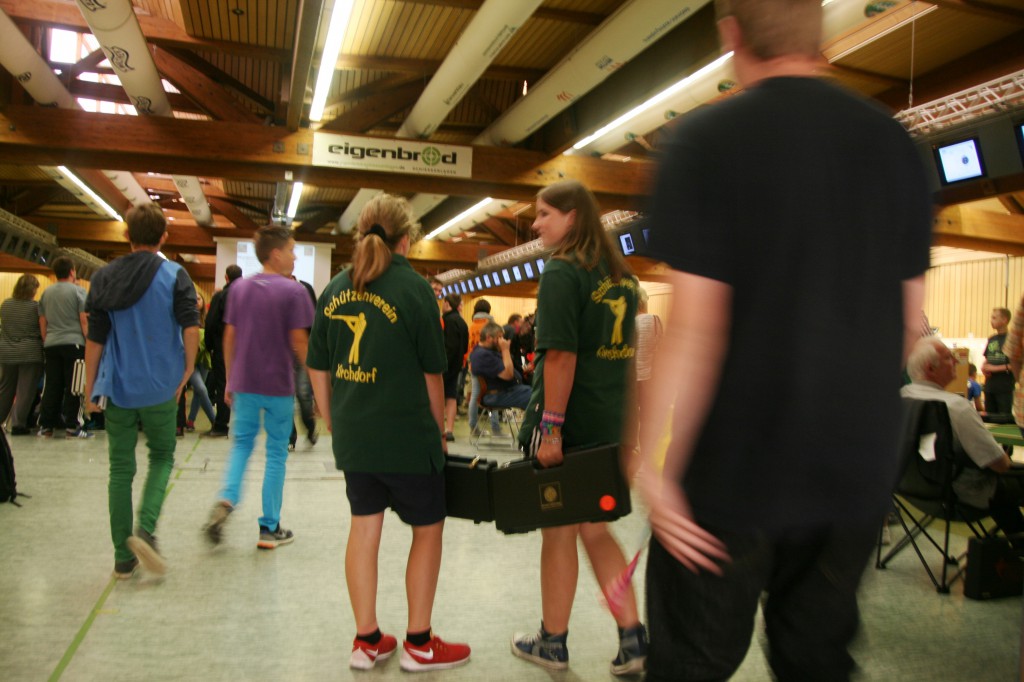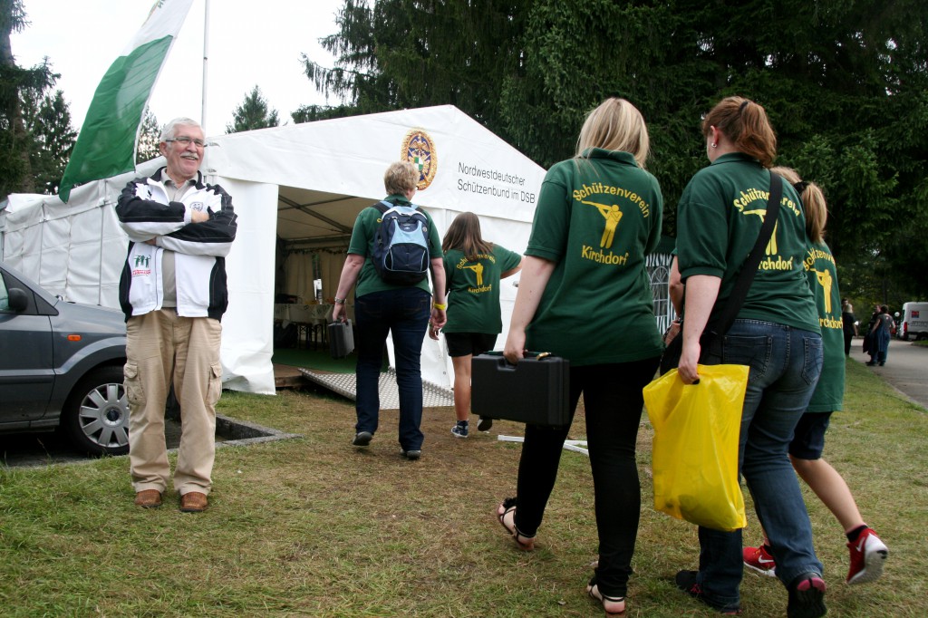 Julika Staas wurde von Tobias Winkelmann-Bünte und Sascha Langhorst unterstützt, Thomas Nowak Präsident des Rehdener Vereins ließ es sich auch nicht nehmen, ihr alles Gute für diesen Wettkampf zu wünschen. Vater und Mutter Staas, sowie ihre Schwester, drückten ebenfalls kräftig die Daumen. Julika steigerte sich von der ersten Serie von 74 auf beachtliche 81, das war schon Spitze!