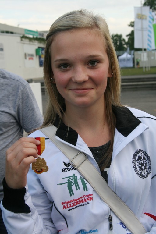 Stolz zeigte Kira ihre goldene Meisterschützen-Medaille, diese kann man sich nicht kaufen, dafür muss man schon eine sehr gute Leistung bei der DM bringen...