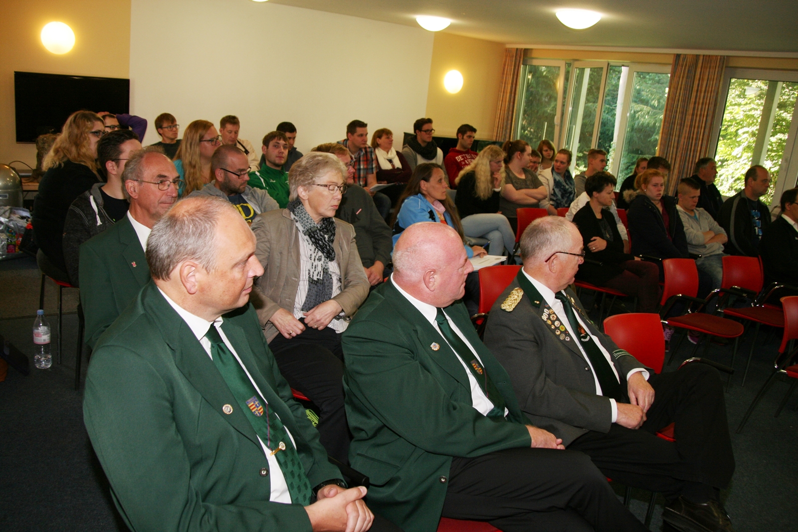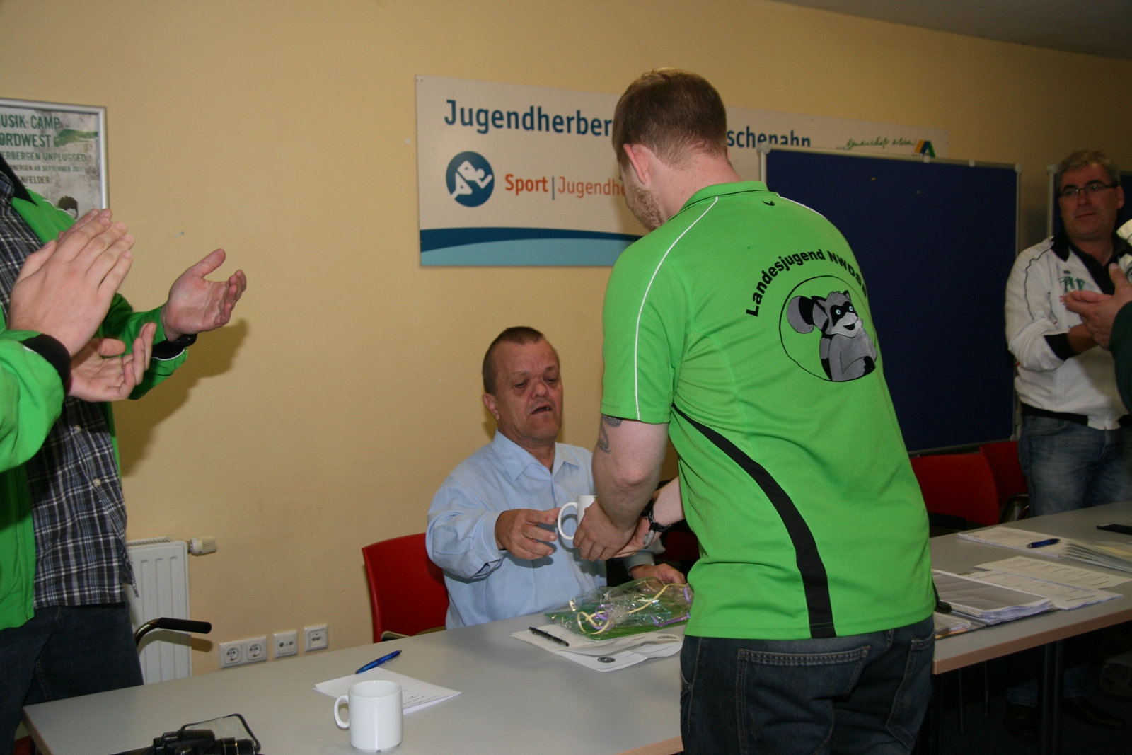 Zuvor hatte Landesjugendleiter Torsten Meinking alle recht herzlich im Versammlungsraum der Jugendherberge in Bad Zwischenahn zum 37. Landesjugendtag begrüßt. Die Tagesordnungspunkte waren schnell „abgearbeitet“, die Berichte des Landesjugendleiters und dem Landesjugendsprechers fanden keine Beanstandung. Henrik Quast überbrachte erstmals als neuer Bundesjugendsprecher die herzlichsten Grüße der DEUTSCHEN SCHÜTZEN JUGEND (DSJ). Er bedankte sich auch beim NWDSB-Jugendvorstand für die Hilfe bei der Deutschen Meisterschaft in München. Bei den Wahlen ging es zügig voran, alle Posten wurden bestätigt (Landesjugendsprecher Yannik Schlag, Landesjugendsprecherin Sonka Reents und stv. Pressewart Malte Gehlken) Das Amt für besondere Aufgaben, welches seit 17 Jahren von Klaus Donner ausgeübt wurde, konnte noch nicht besetzt werden, krankheitsbedingt gab er dieses Amt auf. Torsten Meinking und Yannik Schlag überreichten ihm Presente, unter stehenden Ovationen wurde er Verabschiedet. Der Abschied fiel ihm doch schwer, er möchte aber gern bei der Jugend „vorbeischauen“.