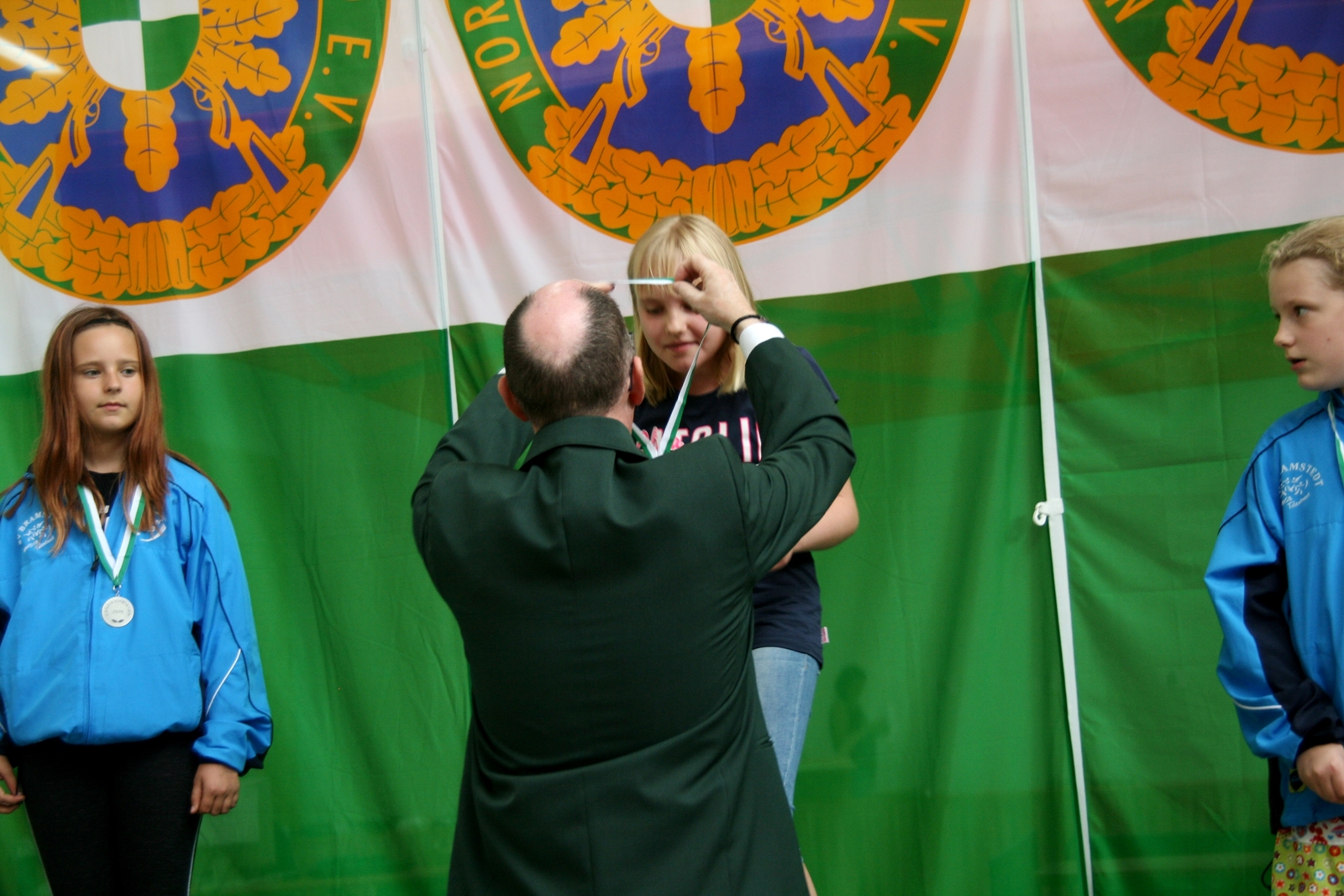 Mit dem Lichtpunktgewehr Auflage hat in diesem Jahr nur Johanna Ziegler vom SV Strange-Buchhorst (rechts) in der Schülerklasse III auf dem obersten Treppchen gestanden. Ihre Vereinskameradin Lea Hadeler errang mit der Lichtpunktpistole Freihand in der Schülerklasse II ebenfalls „GOLD“!