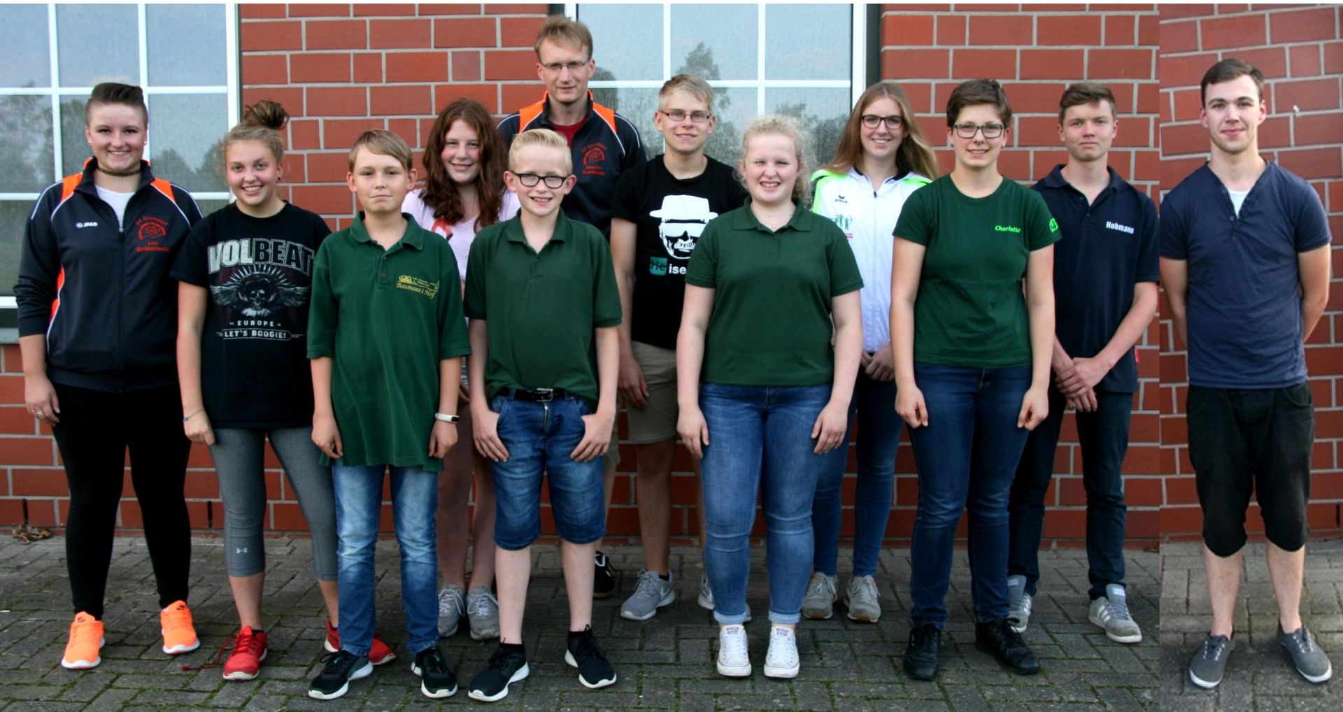 DM-Teilnehmer bildlich von links: Lea Grünenwald, Lea-Sophie Osterkamp, Justus Plenge, Daria Kastens, Louis Löhmann, Sascha Sandmann, Nicolas Bockhop, Lena Löhmann, Lisa Reuter, Charlotte Rump, Jan Segelhorst, Leon Heidorn (Kira Simon fehlt auf dem Foto)