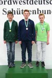 Mit dem Lichtgewehr in der Schülerklasse B männlich belegte Jannis Häbel vom SV Sulingen 1848 mit 133,1 Ring den 2. Platz. Den 3. Platz nahm Levin Cording vom KSV Ströhen mit dem Lichtgewehr in der Schülerklasse C männlich mit 132,8 Ring ein.