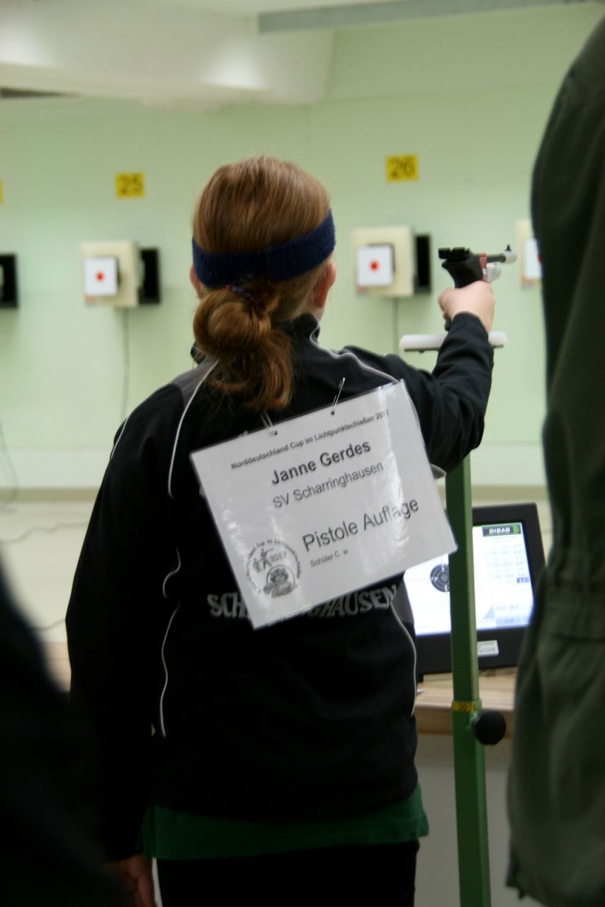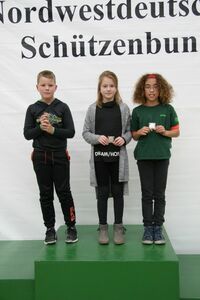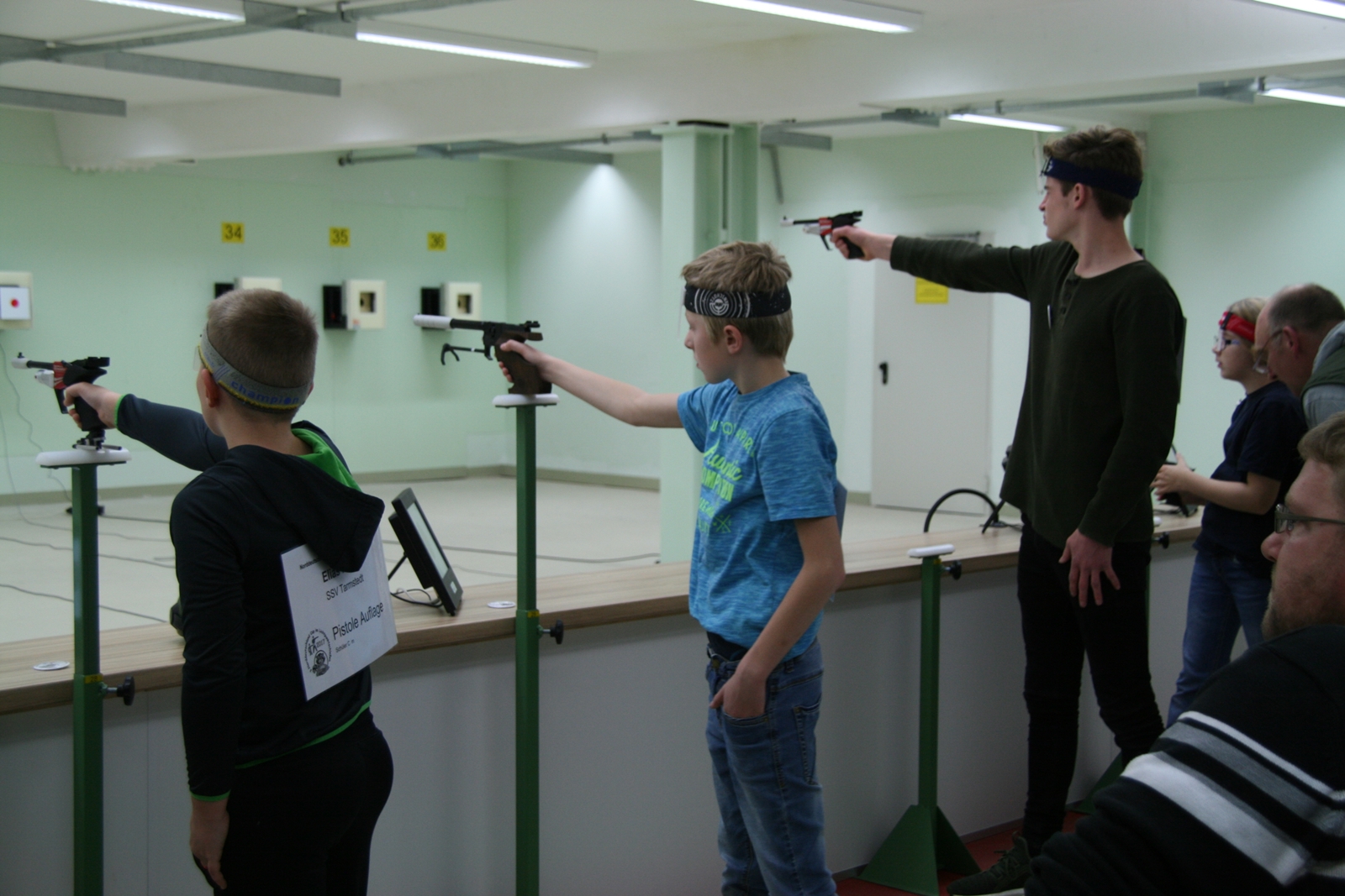 Mit der Lichtpistole Auflage wurde Konstantin Belke vom SV Mallinghausen 1. mit 169,8 Ring und Julian Pufel vom SV Rehden 3. mit 139,2 Ring in der Schülerklasse C männlich. Bei den Schülerinnen C schob sich Mara-Sophie Frommberger mit 169,8 Ring auf Platz 2 und mit 139,2 Ring folgte Okka Zierden vom SV Scharringhausen auf Rang 3. Den 1. Platz bei den Schülern D nahm Bennet Cording vom KSV Ströhen mit 91,0 Ring ein.