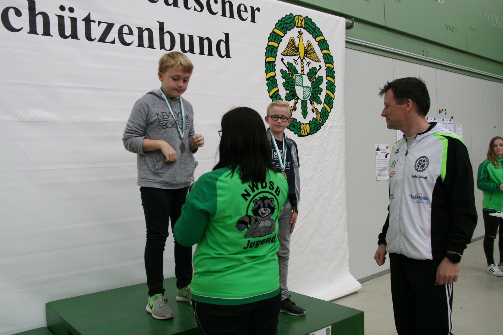Die Siegerehrung wurde von Gerd Harzmeier, Kira Simon, Sonka Reents, Heiko Jabusch und Michael Thier vom Westfälischen Schützenbund durchgeführt. Michael Thier in seiner Funktion als Landesjugendleiter(allgemeine Jugendarbeit), war hier auf „Schnupperkurs“, denn im Oktober 2018 findet ja der 4. Norddeutschland Cup in Dortmund statt.