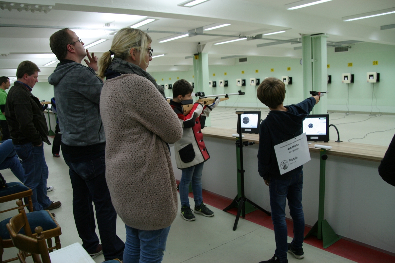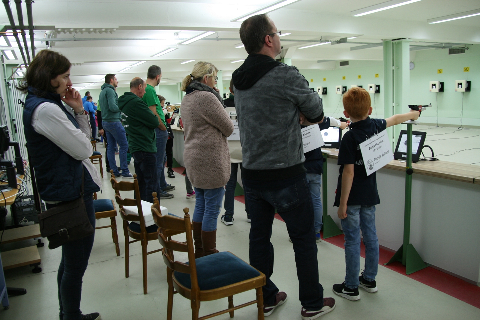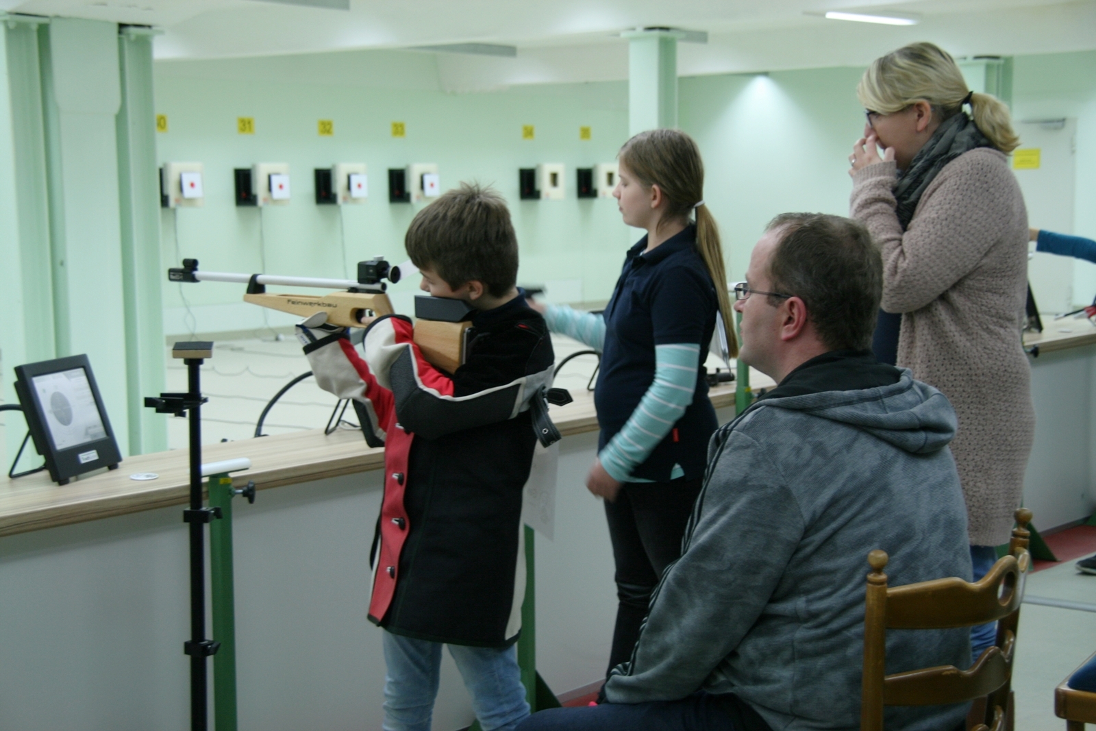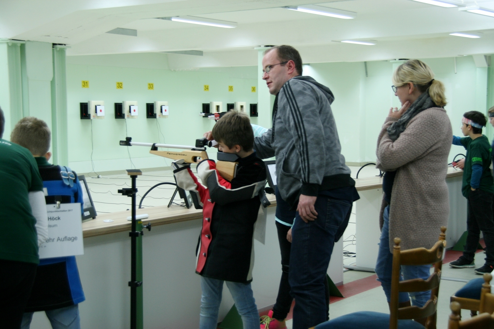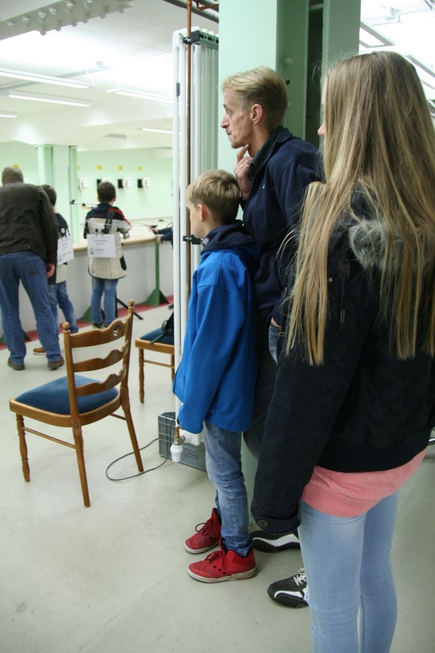 (Jörg Felstehausen vom SV Drebber, mit Familie, hatte der Veranstaltung einen Besuch abgestattet. Er wollte dieses Lichtpunktschießen in "Augenschein" nehmen, denn am 19. November findet beim SV Drebber von 1900 der erste Durchgang RWK-Lichtpunktschießen 2018 statt)