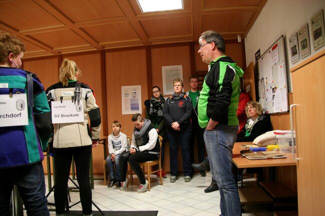 Stellvertretender Bezirkssportleiter Gerd Harzmeier begrüßte alle recht herzlich zum 2. Durchgang des Ligawettkampfes der Schüler und Jugend auf dem "eigenen" Stand. Die Mannschaftsführer der beiden Vereine, Claudia Reuter vom SV Brockum und Karin Husmann vom SV Kirchdorf waren mit ihren Schützlingen pünktlich vor Ort. Einige Schaulustige, sprich Fans, hatten es sich nicht nehmen lassen den jungen Sportschützen die Daumen zu drücken.
