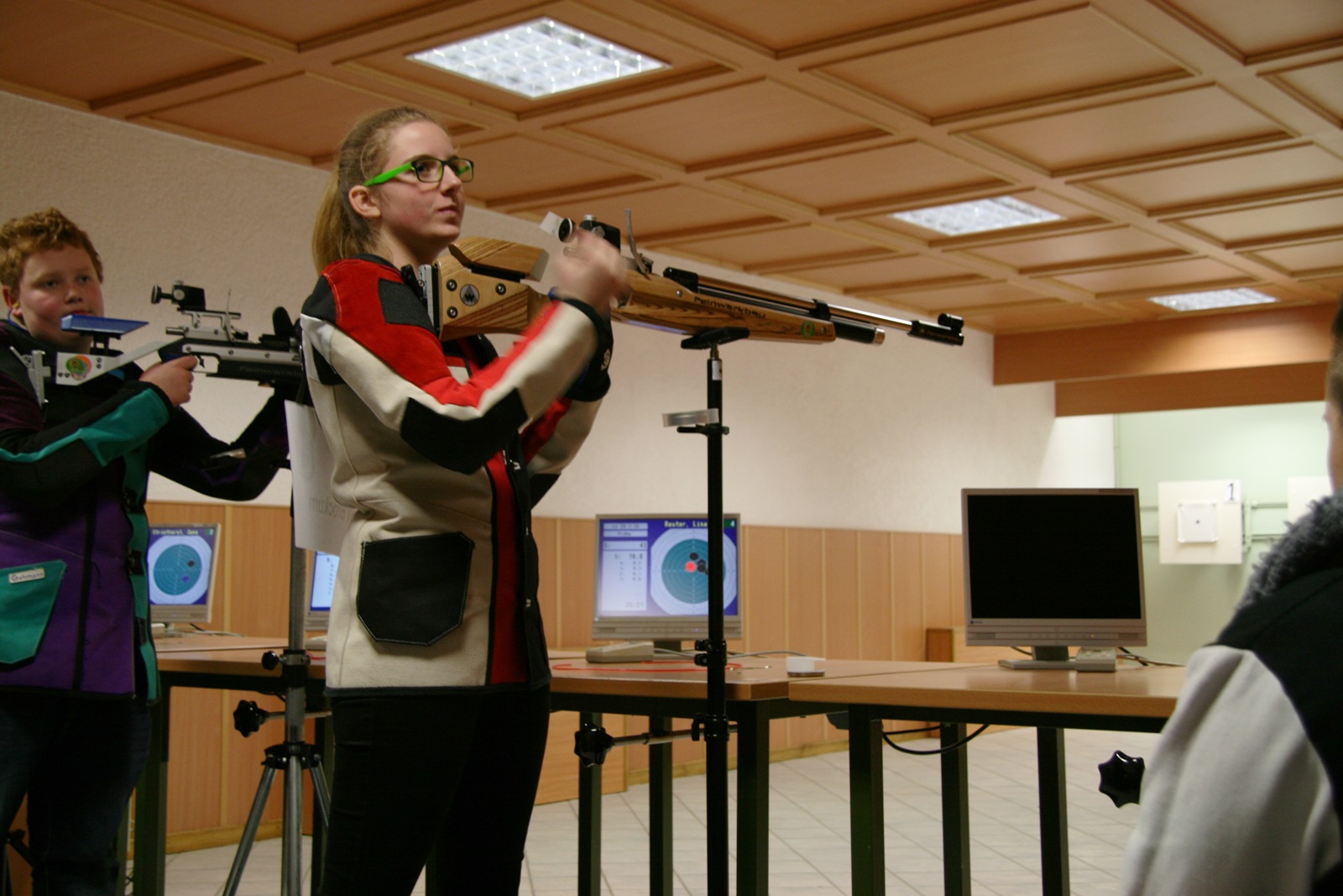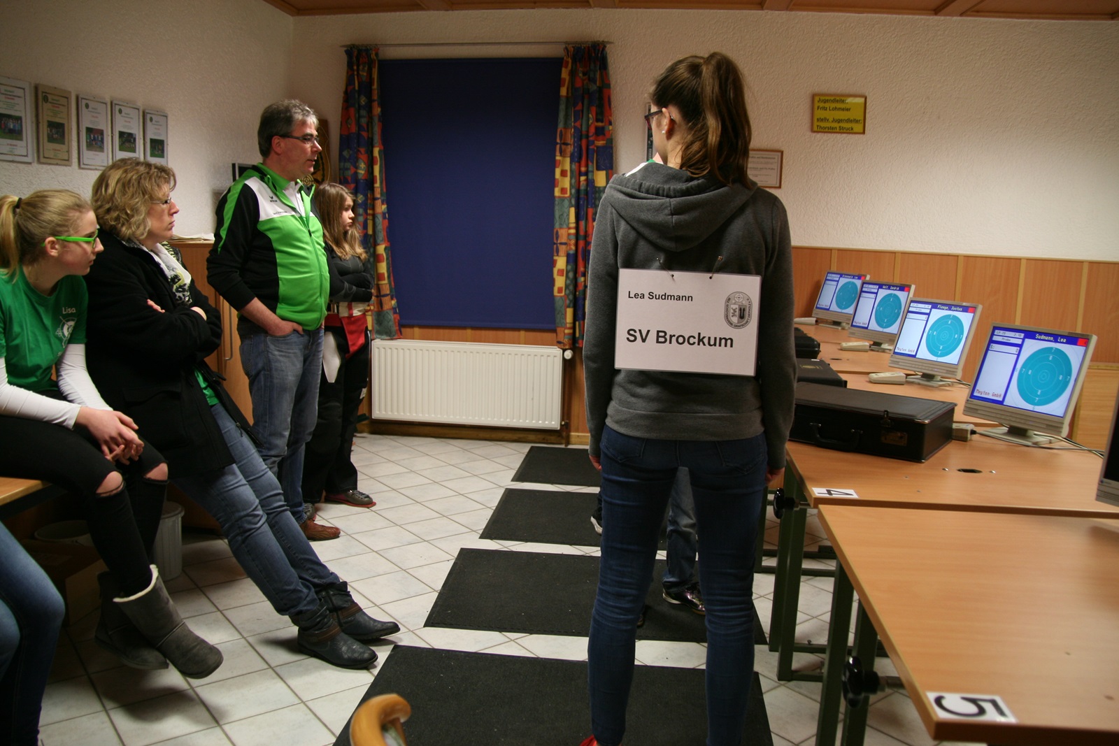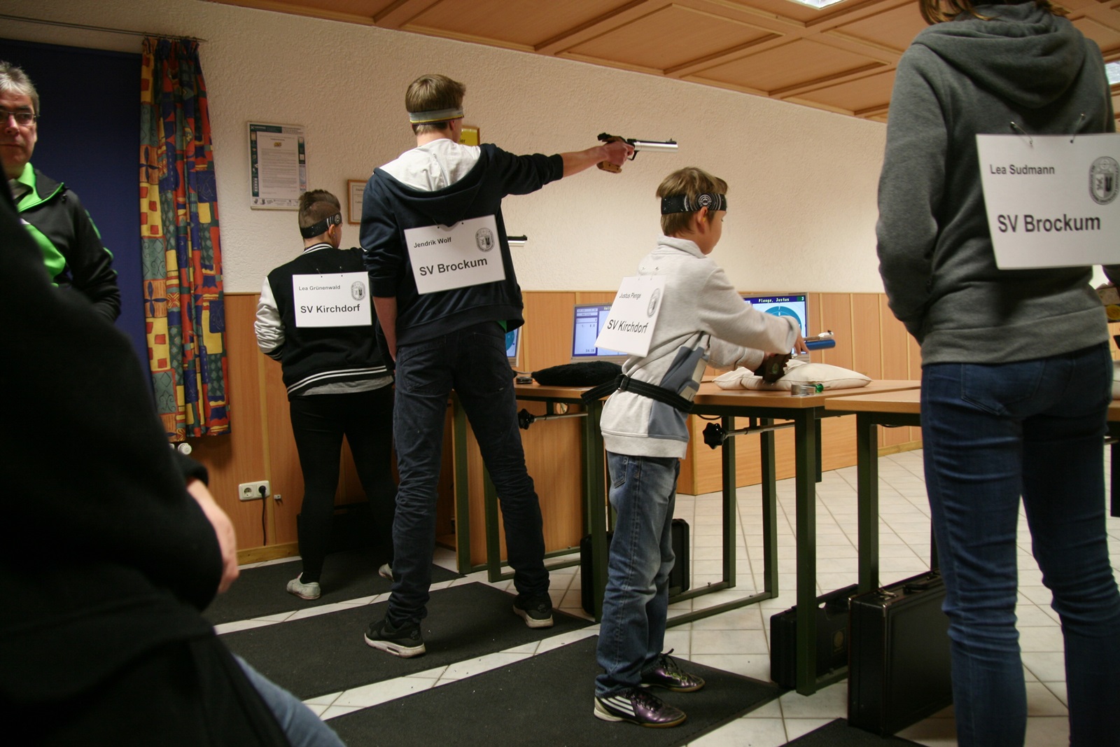 Erst bestritten die Luftgewehrschützen, dann die Luftpistolenschützen ihren Wettkampf. Gerd Harzmeier leitete den Wettkampf und gab zwischendurch die Zehnerserien für alle bekannt. Die beste Zehnerserie hatte mit dem Luftgewehr Lisa Reuter vom SV Brockum mit 92 Ringen und Justus Plenge vom SV Kirchdorf erzielte mit 87 Ringen die beste Serie mit der Luftpistole.
