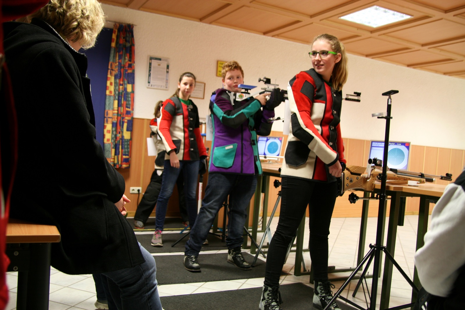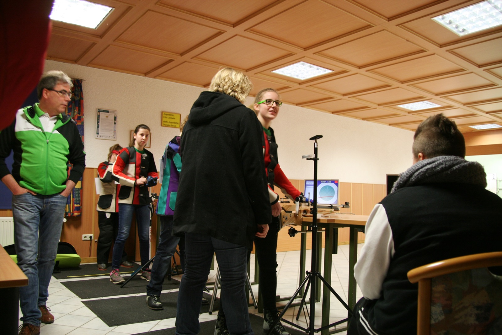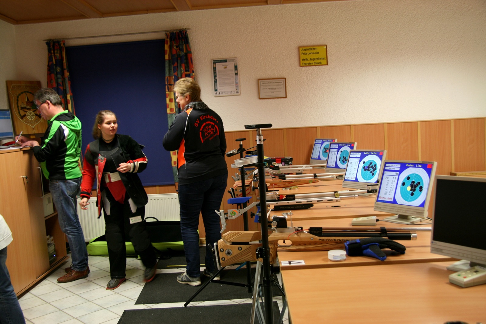 Erst bestritten die Luftgewehrschützen, dann die Luftpistolenschützen ihren Wettkampf. Gerd Harzmeier leitete den Wettkampf und gab zwischendurch die Zehnerserien für alle bekannt. Die beste Zehnerserie hatte mit dem Luftgewehr Lisa Reuter vom SV Brockum mit 92 Ringen und Justus Plenge vom SV Kirchdorf erzielte mit 87 Ringen die beste Serie mit der Luftpistole.