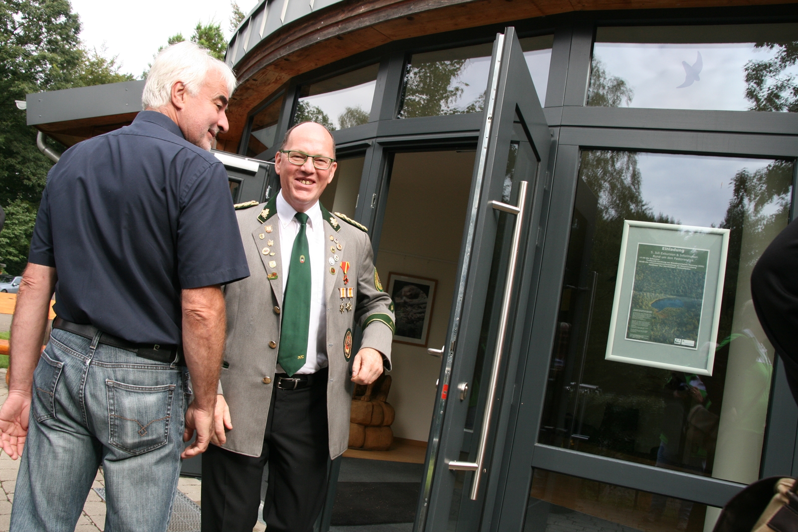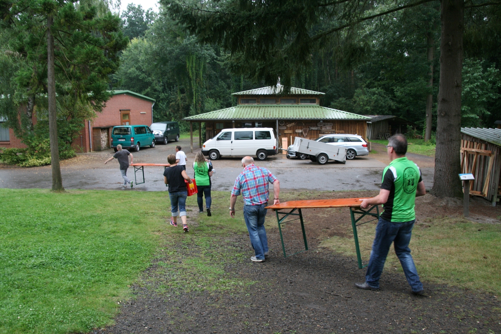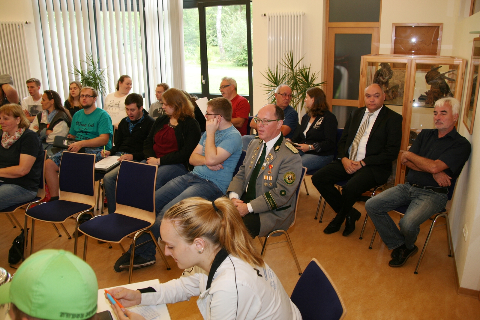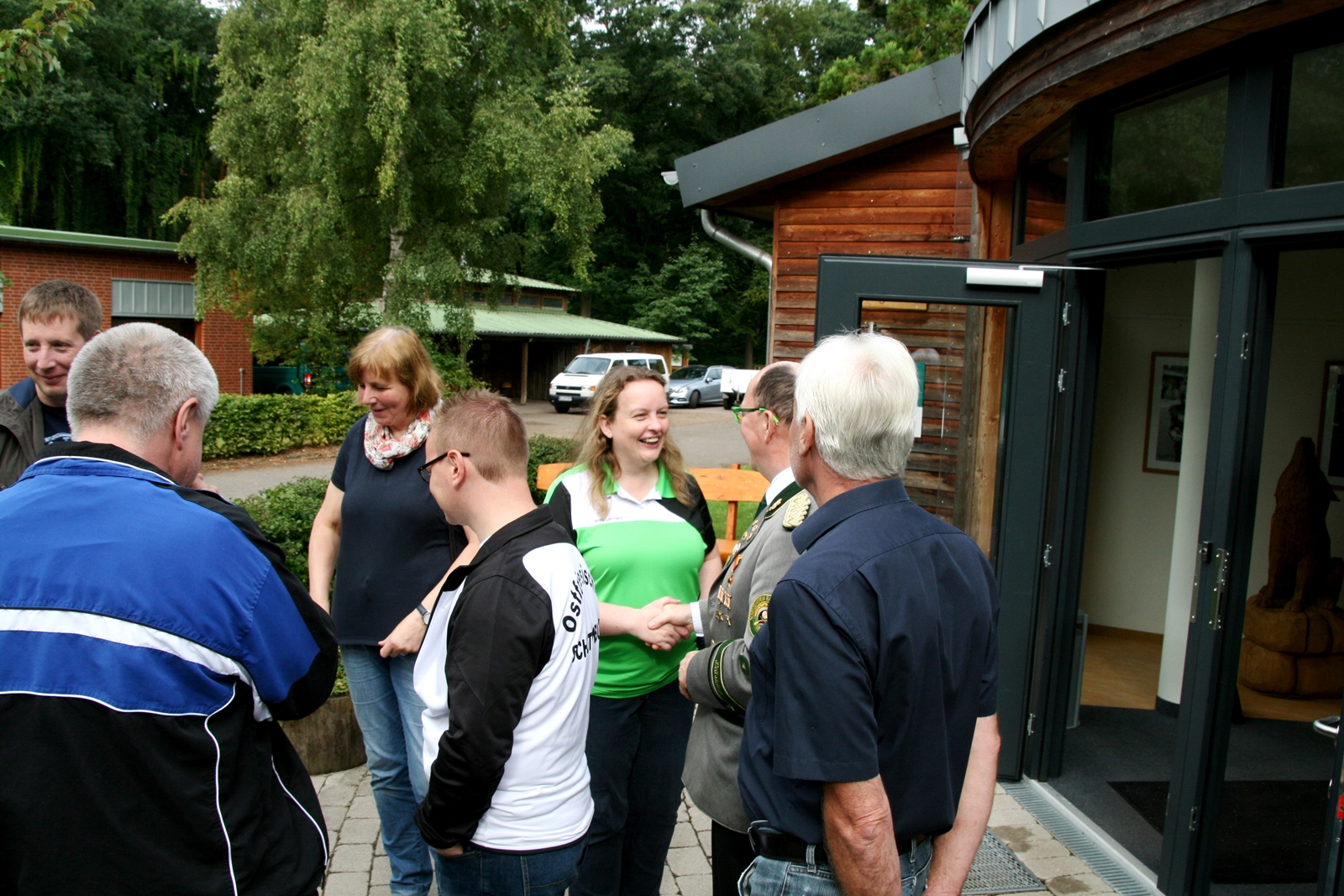 Am Abend übernahm das Präsidium des Bezirks-Schützenverbandes Diepholz, an der Spitze Präsident Karl-Friedrich Schardelmann, das Grillen. Leider fing es "pünktlich" zur Grillzeit an zu regnen, aber man war ja flexibel, gespeist wurde drinnen, im Trockenen. Britta Löhmann und Gerd Harzmeier begrüßten dann alle noch ein mal recht herzlich und wünschten Guten Appetit. Nach der „Verköstigung“ aller Teilnehmer, unternahmen alle am späten Abend eine Nachtwanderung mit dem Revierförster, der sehr ausführlich über das Leben im Wald informierte.