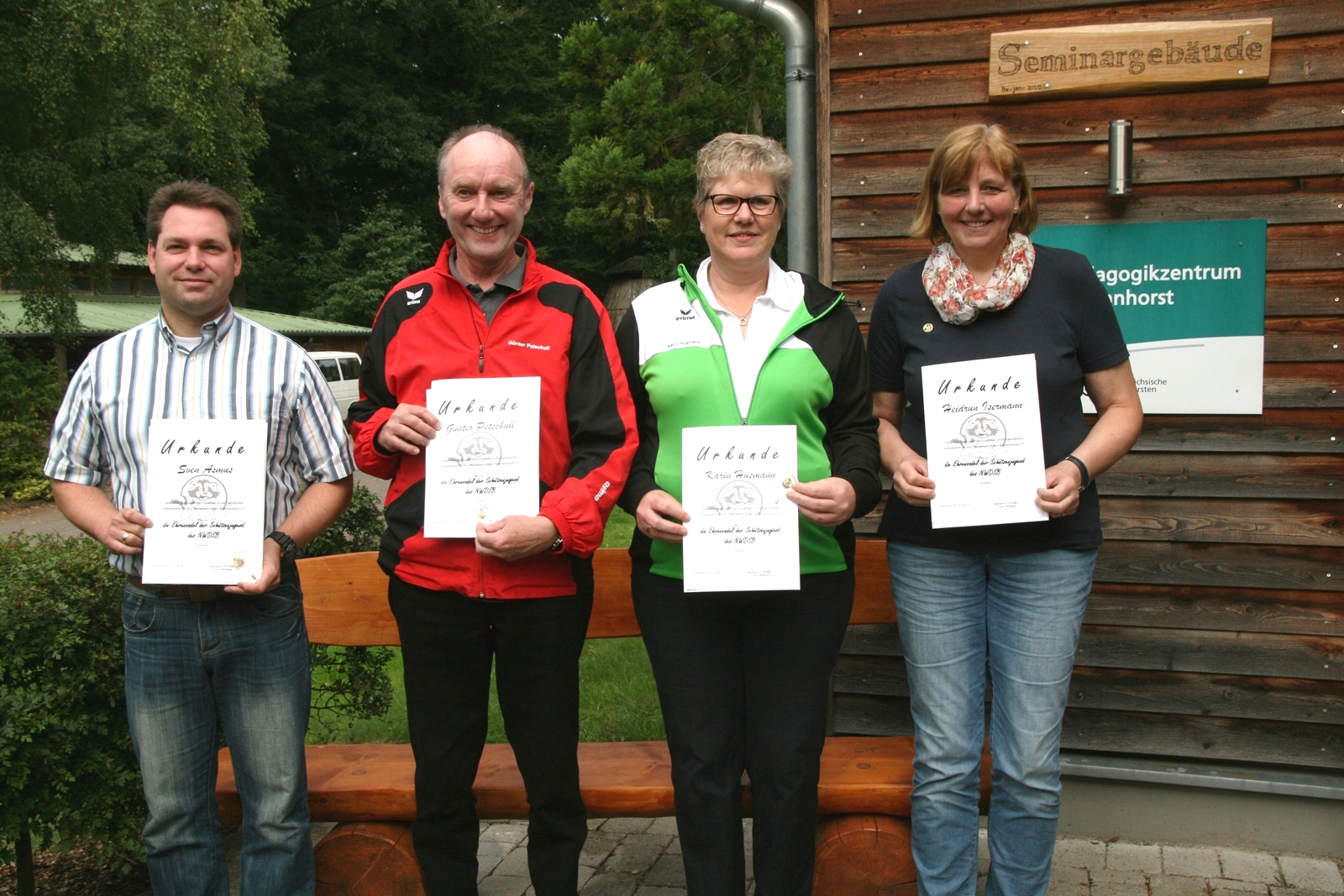 Sven Asmus, Günter Petschull, Karin Husmann und Heidrun Isermann erhielten als Auszeichnung für ihre gute Jugendarbeit, die Willi-Nadel der NWDSB-Jugend.