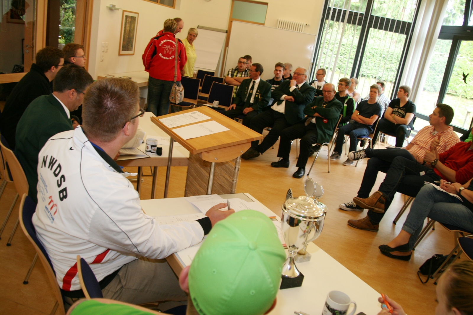 Der Workshop der Jugendsprecher, der in Gruppen durchgeführt wurde, hatte Vorschläge erarbeitet. Eine Idee war ein J-Team zugründen, den Anstoß zu dieser Idee kam von David Beider. Der hatte kurz vorher einen Vortrag gehalten über verschiedene Möglichkeiten, die Jugend für den Sport zu mobilisieren, auch für das Sportschiessen. David Beider leistet zur Zeit einen Bundesfreiwilligendienst beim Kreissportbund Diepholz. Daran nahmen nicht nur die Jugendsprecher teil, sondern auch der Jugendausschuss, der parallel tagte. Nordwest Cup, Talentnester und Jugendbester waren bei ihrer Sitzung die wichtigsten Themen.