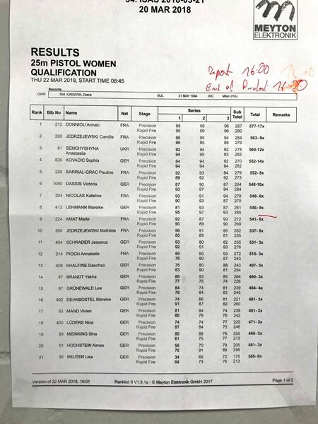 Morgen am 23. März findet dann Mixed statt, aber ohne Lisa und Lea. Samstag, den 24. März steht dann noch Luftpistole für alle Mädels an.