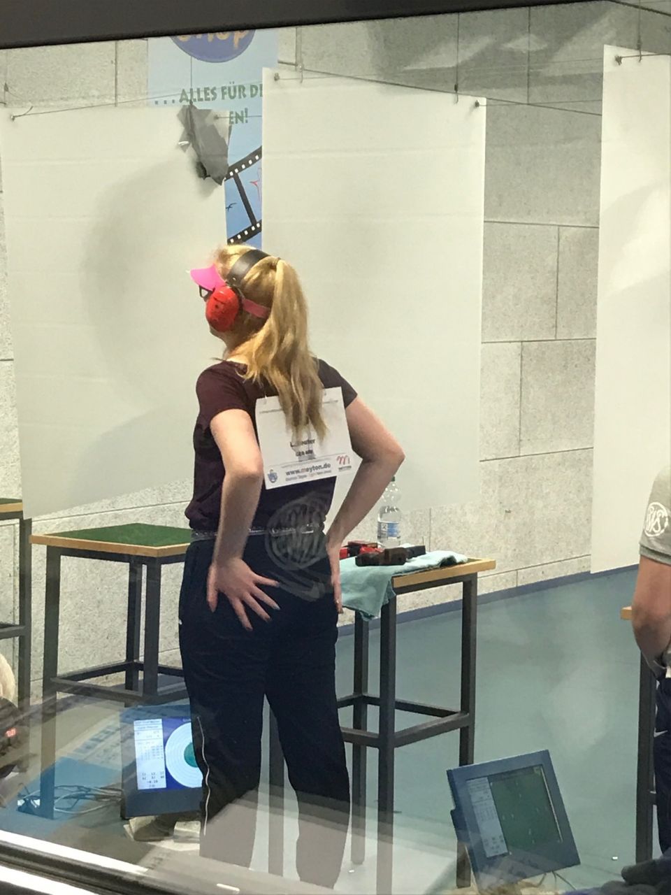 Tag eins ist geschafft, Lea Grünenwald hat mit der Sportpistole für sich neue Bestleitung erzielt, Lisa Reuter hatte zu Anfang Probleme mit der Sportpistole..