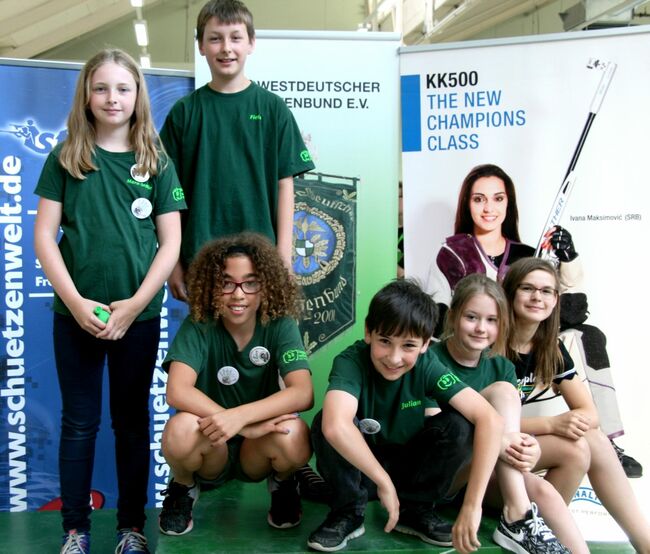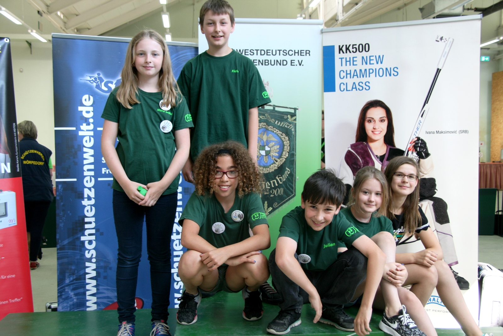Alle Rehdener Lichtpunktschützen, welche zu den Podiumsplätzen beigetragen und Medaillen gewonnen haben. Von links: Mara-Sophie Frommberger, Fiete Pohl, Jolina Tinnemeyer, Julian Pufel, Alina Hartlieb, Laura Grewe.