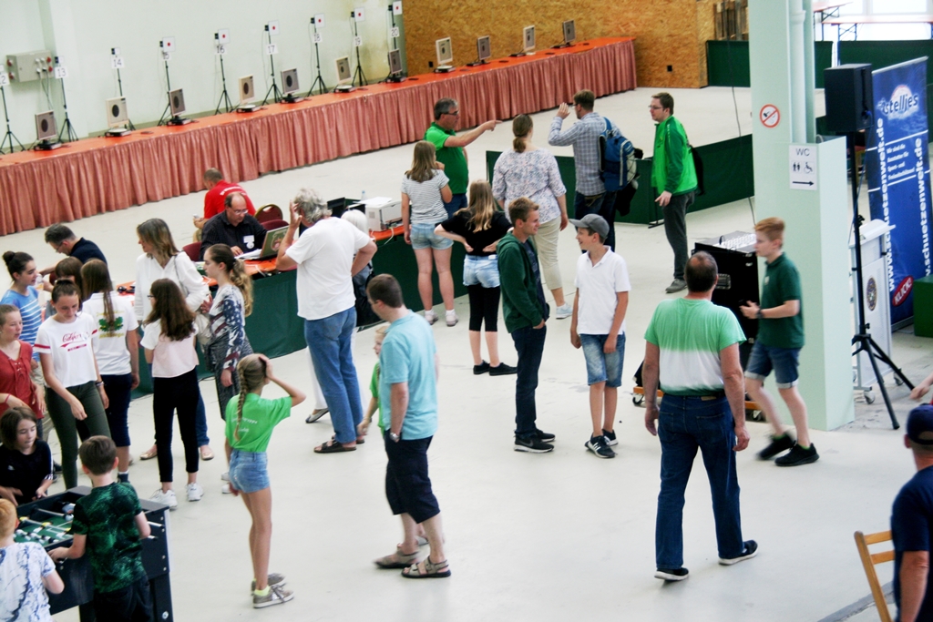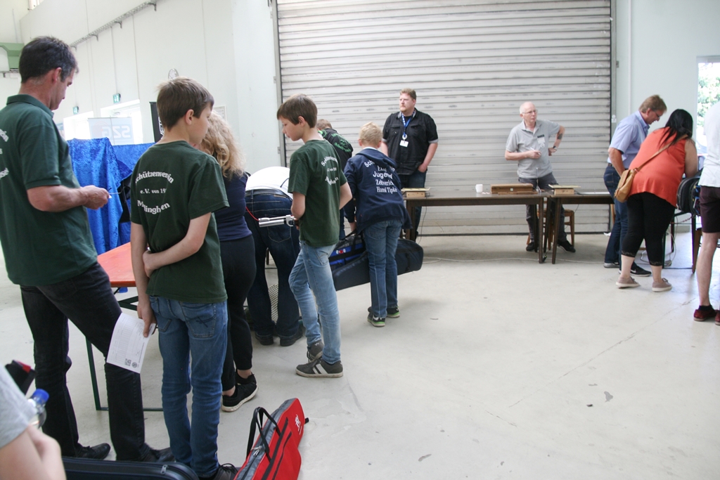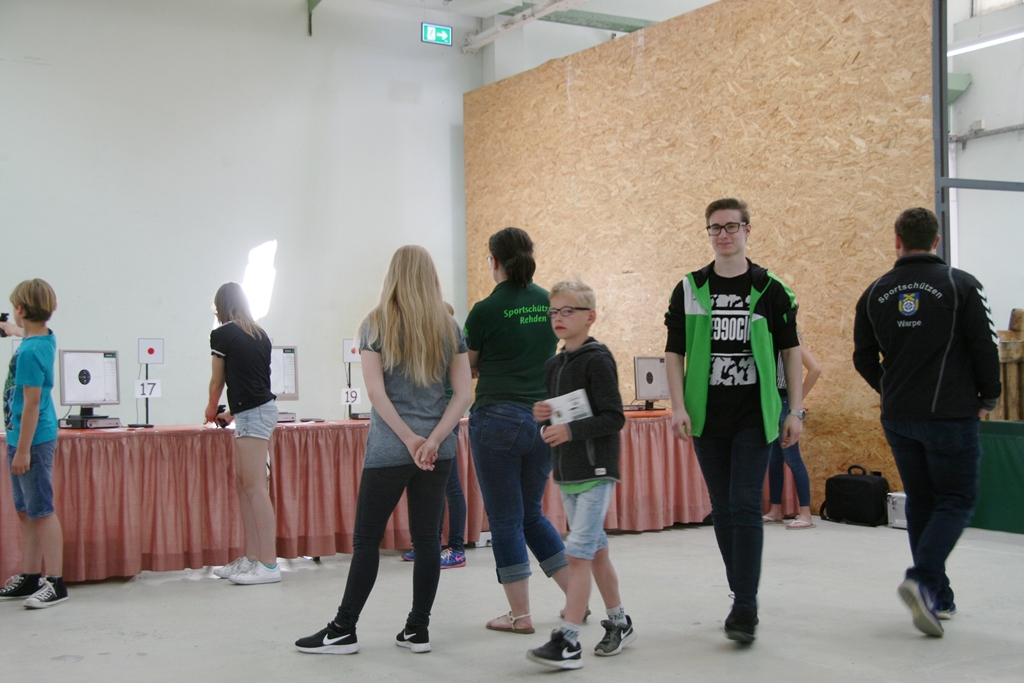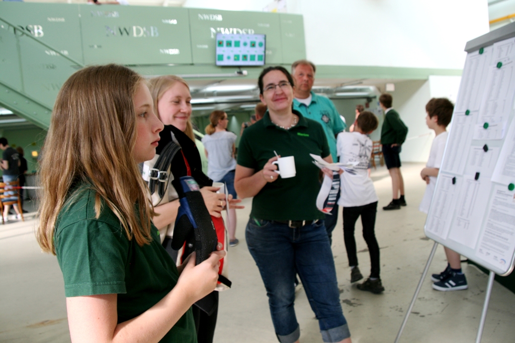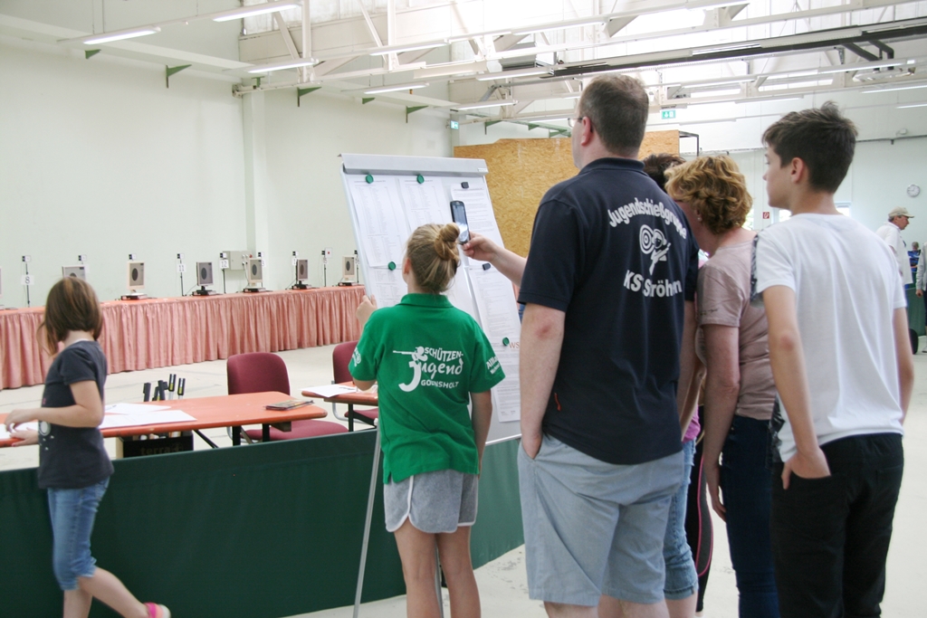 Nach ihren Wettkämpfen waren die immer wieder erneuerten Ergebnislisten im Aushang Ziel der jungen Sportschützen: „Auf welchem Platz bin ich nun?“ Die Siegerehrung wurde vom Jugendvorstand des Nordwestdeutschen Schützenbund durchgeführt, unter der bewährten Leitung von Jugendleiter Torsten Meinking und seinem Stellvertreter Gerd Harzmeier. Trotz der hohen Temperaturen, hatten doch noch eine vielversprechende Anzahl von Lichtpunktschützen mit ihren Betreuern bis zur Siegerehrung „durchgehalten“.
