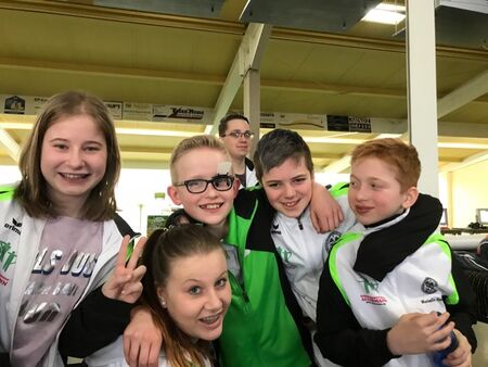 Doreen Dörmann vom SV Kirchdorf und Louis Löhmann vom SV Mallinghausen, beide im NWDSB-Kader-Schüler-Pistole, nahmen am Schülervergleich in Inden Altendorf, Rheinischer Schützenbund, am Wochenende teil, auf dem Foto dabei auch Laura Hoffman (Stienstedt), Maximilian Töpperwien (Haendorf) und Maximilian Röpers (Selsingen). Mit recht guten Ergebnissen haben sie auch Wettkampferfahrung in geselliger Runde sammeln können.