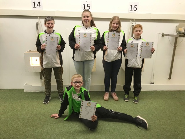 Hier kurz die Ergebnisse unserer beiden Nachwuchsschützen: Doreen Dörmann schoss in der ersten Runde 168 Ring und in der zweiten Runde 155 Ring, Louis Löhmann erzielte 154 und 144 Ringe. Sie wurden mit ihrer Gesamtringzahl 323 - 14. und 298 - 17, bei der Siegerehrung erhielten alle schöne Teilnehmerurkunden.