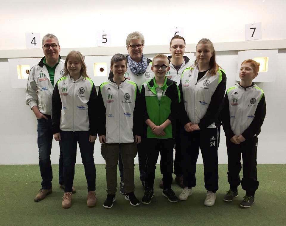 Am Freitagnachmittag gegen 15:00 Uhr hatte sich die kleine Gruppe NWDSB-Kaderschützen Schüler Luftpistole mit einem Kleinbus auf den Weg gemacht. Doreen Dörmann vom SV Kirchdorf und Louis Löhmann vom SV Mallinghausen, beide im NWDSB-Kader-Schüler-Pistole, dazu auch Laura Hoffman (Stienstedt), Maximilian Töpperwien (Haendorf) und Maximilian Röpers (Selsingen). Die Verantwortlichen des NWDSB-Teams stellv. Landesjugendleiter Gerd Harzmeier, Trainerin Karin Husmann und Trainer Kristopher Quell komplettierten die kleine Schießsportgruppe. Um 20:00 Uhr war man am Ziel, man wurde herzlich vom Rheinischen Jugendvorstand begrüßt, nahm den Schießstand in Augenschein, dort nahm man auch das kindgerechte leckere Abendessen ein.