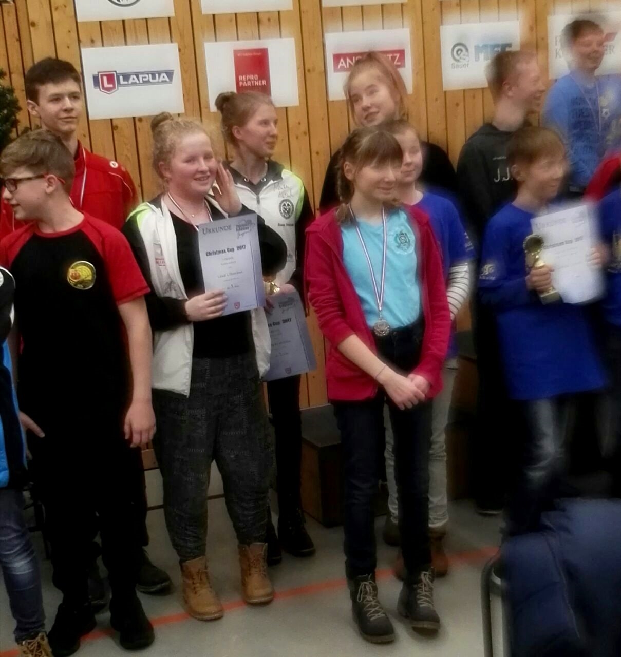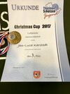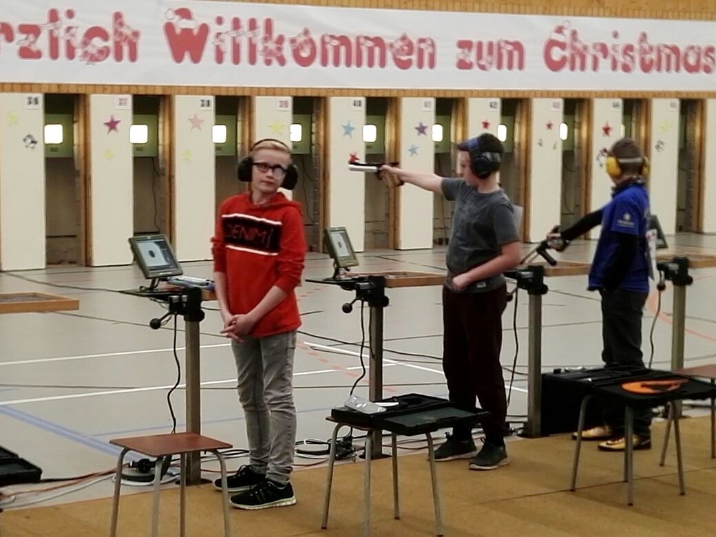 Ja, also nun von Anfang an: am 15. Dezember machte sich der NWDSB-Schüler-Kader Luftpistole mit 15 Schützen und drei Trainern (Bernd Cordes, Christoph Quell und Karin Husmann)auf nach Suhl um am Christmas Cup 2017 teilzunehmen. Nach einem spannenden Wettkampf, den alle NWDSB-Schützen um 12:30 Uhr begannen und mit tollen Ergebnissen abschlossen, ging es zum Weihnachtsmarkt um die Zeit bis zur Siegerehrung zu überbrücken. Dann kam der Höhepunkt des Tages, Aimee Hochstein hatte den LP-Cup gewonnen und ist nun stolze Besitzerin einer Paradini-Pistole. Auch Lena Löhmann freute sich sehr über ihren dritten Platz und ihre Medaille und die Sachpreise (Rucksack u. LG Muni).