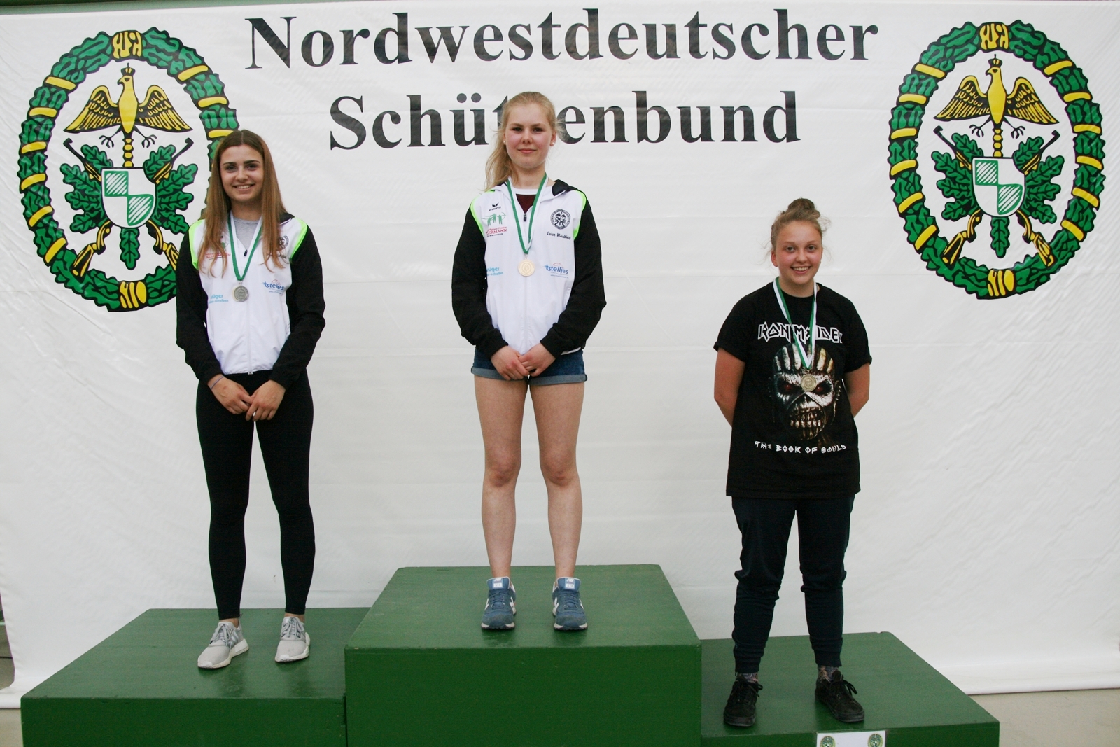 Mit der Luftpistole erzielte Lisa Reuter in der Schülerklasse A vom SV Brockum 165 Ring und belegte in der Schülerklasse A den hervorragenden Bronzeplatz. Auf den Plätzen folgten Lena Löhmann SV Mallinghausen (158 R.), Charlotte Rump SV Rehden (155 R.), Daria Kastens SV Kirchdorf (153 R.), Leni Mattfeld SV Brockum (140 R.), Johanna Grewe SV Rehden(138 R.) und Stefanie Meyer SV Wohlstreck (87 R.). In der gleichen Klasse starteten Justus Plenge SV Kirchdorf (159 R.), Konrad Belke SV Mallinghausen (151 R.), Jonas Mücke (150 R.) und Ben-Henrik Sprick (129 R.) vom SV Kirchdorf, Gregor Belke SV Mallinghausen (126 R.), Finn-Marek Schmiegel SV Rehden (117 R.) und Tristan Kastens (88 R.) vom SV Kirchdorf.