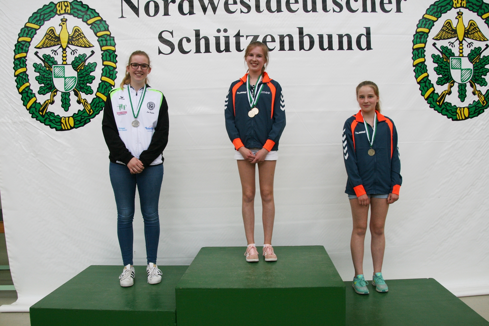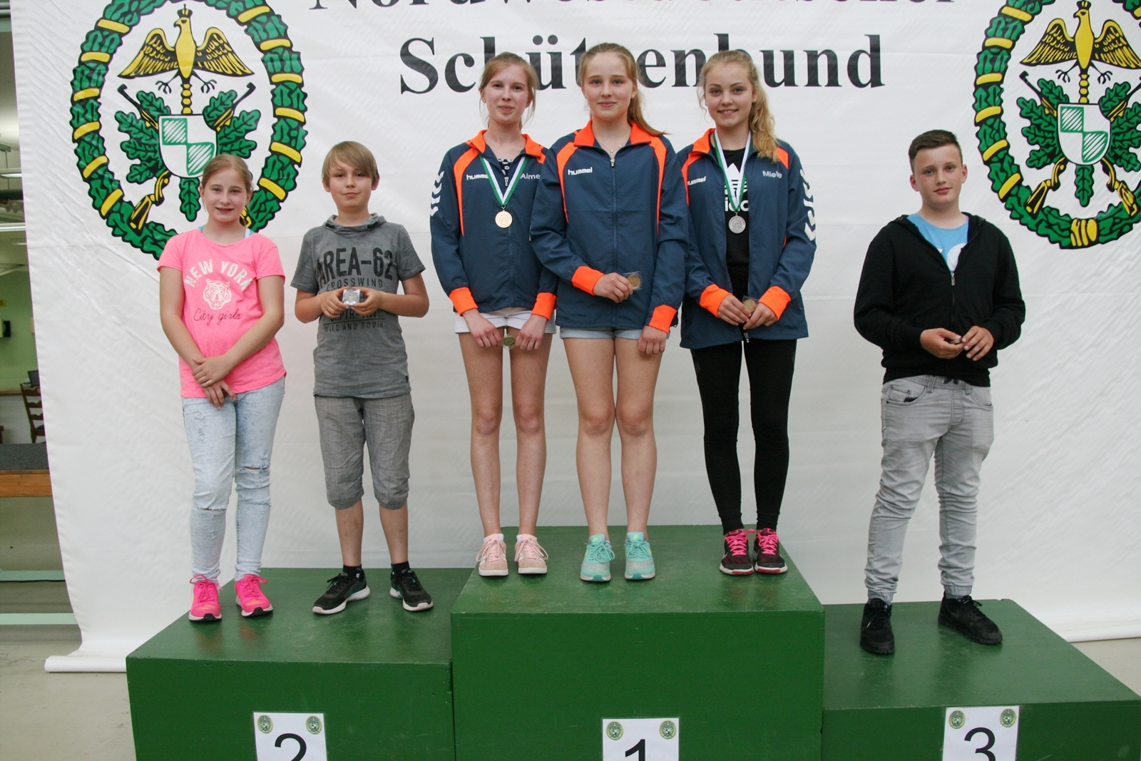 Mit der mehrschüssigen Luftpistole gewann in der Klasse Schüler A m Justus Plenge vom SV Kirchdorf die Goldmedaille mit 22 Treffern. Lisa Reuter vom SV Brockum erhielt die Silbermedaille auch mit 22 Treffern. Lena Löhmann vom SV Mallinghausen war sehr nah an der Bronzemedaille mit 18 Treffern, es wurde der gute vierte Platz. Doreen Dörmann (15) und Daria Kastens (15) vom SV Kirchdorf sowie Johanna Grewe (14) vom SV Rehden folgten auf den Plätzen sechs und acht. Fünfte wurde Lea Grünenwald (41) und Lea-Sophie Osterkamp (37) beide vom SV Kirchdorf, sie wurde sechste in der Jugendklasse.
