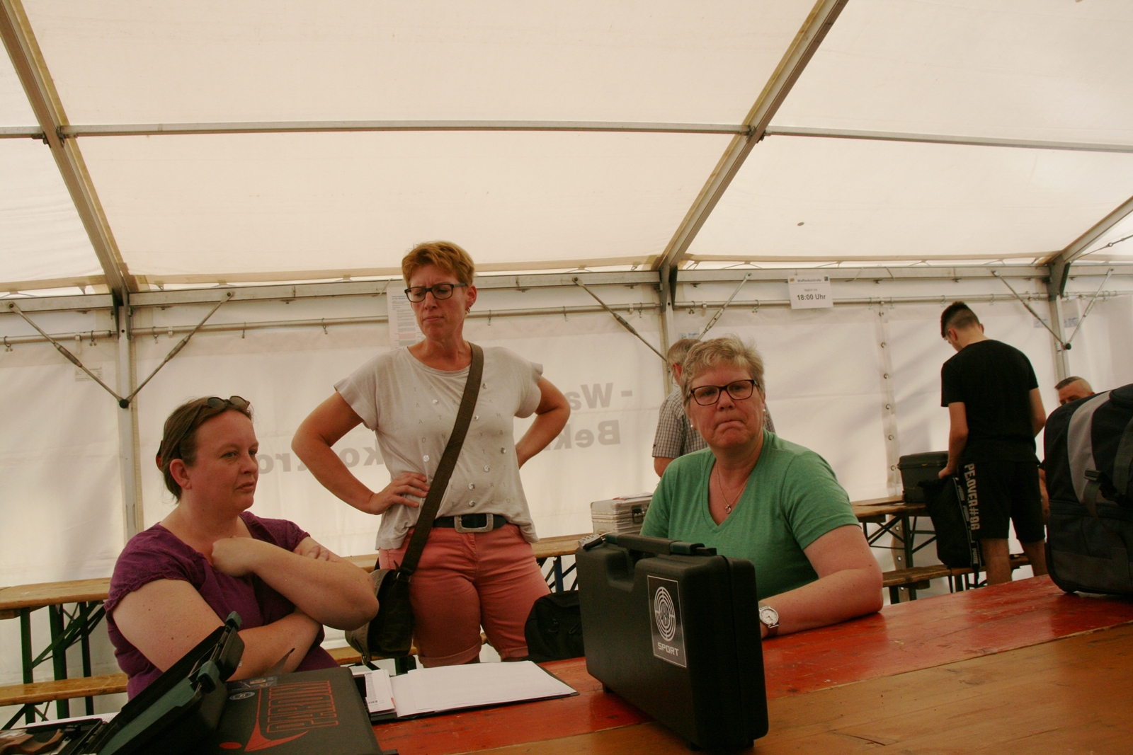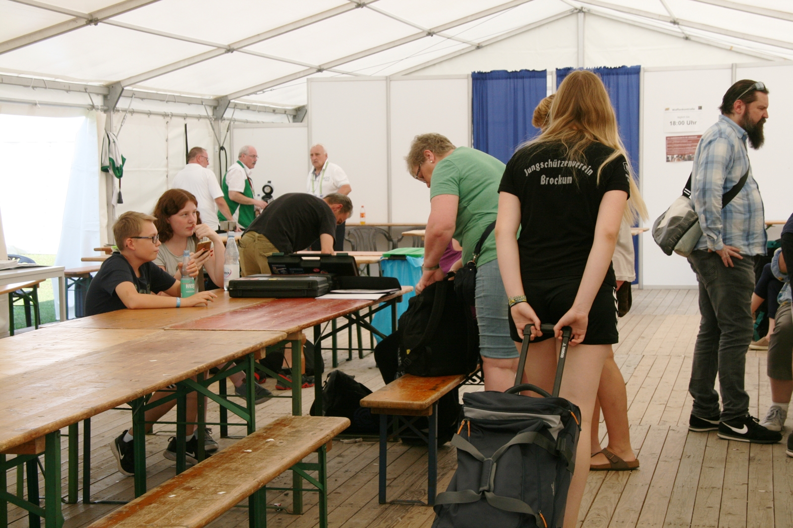 Nach unterschiedlichen Fahrtzeiten u. "umkurvten" Baustellen, sind alle gut in München-Hochbrück angekommen. Haben gleich die Waffenkontrolle erledigt, Dopingerklärungen unterschrieben und ihre Rückennummern abgeholt. Ihre Sportgeräte im "Keller" in Verwahrung gegeben und dann zum NWDSB-Zelt gegangen. Unterwegs dorthin schon einige Medaillengewinner getroffen und natürlich herzlich gratuliert. Nicht zu vergessen sind die fleissigen Helferinnen die im Zelt kühle Getränke, Kaffee und Kuchen bereitgestellt haben. Die Zimmer im Alten Hof in Vatterstetten wurden dann nach einem guten Abendessen belegt...
