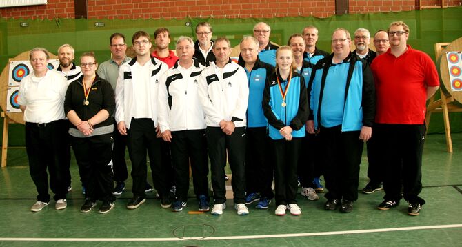 Alle Teilnehmer und Bezirksmeister 2017 auf einen Blick (Helga Twietmeyer und Wilhelm Möhlenbrock fehlen)von links: Alfons Riesenbeck, Harald Rohe, Maren Maruschewski, Jörg Lohmann, Eike Richter, Andreas Schraubek, Bernd Zimmer, Hans-Georg Backhaus, Dirk Dworzack, Jürgen Vogt, Rolf Möhlenbrock, Jessika Emker, Jürgen Rohlfs, Stephan Emker, Bernd Demel, Bernhard Trachsel, Klaus Wilker, Steffen Griffel
