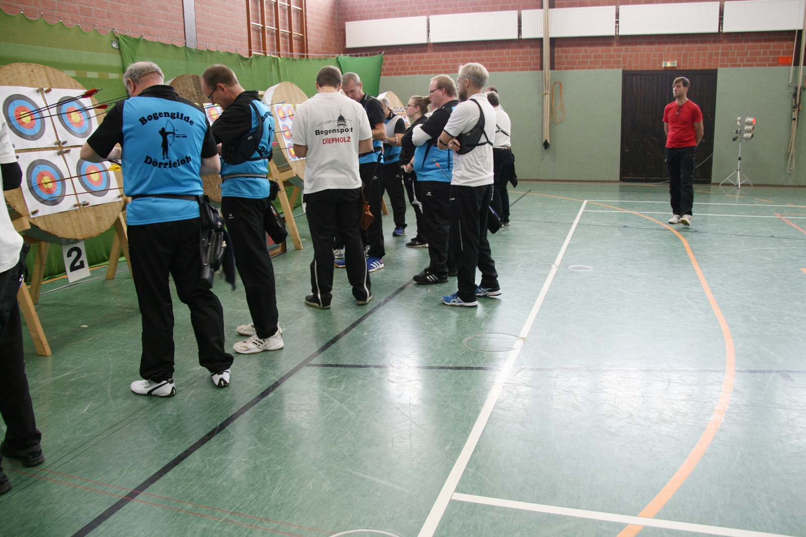Nach der Begrüßung, der Bogen- u. Passkontrolle, begann um 9:00 Uhr das Einschießen. Um 10:00 Uhr starteten die Bogenschützen zum Wettkampf in den verschiedenen Altersklassen mit Recurve-, Blank- und Compoundbogen. Es wurde auf sechs Scheiben geschossen, mit verschieden großen Auflagen (für jeweils zwei Bogenschützen). Die Distanz zu den Scheiben betrug 18 m.