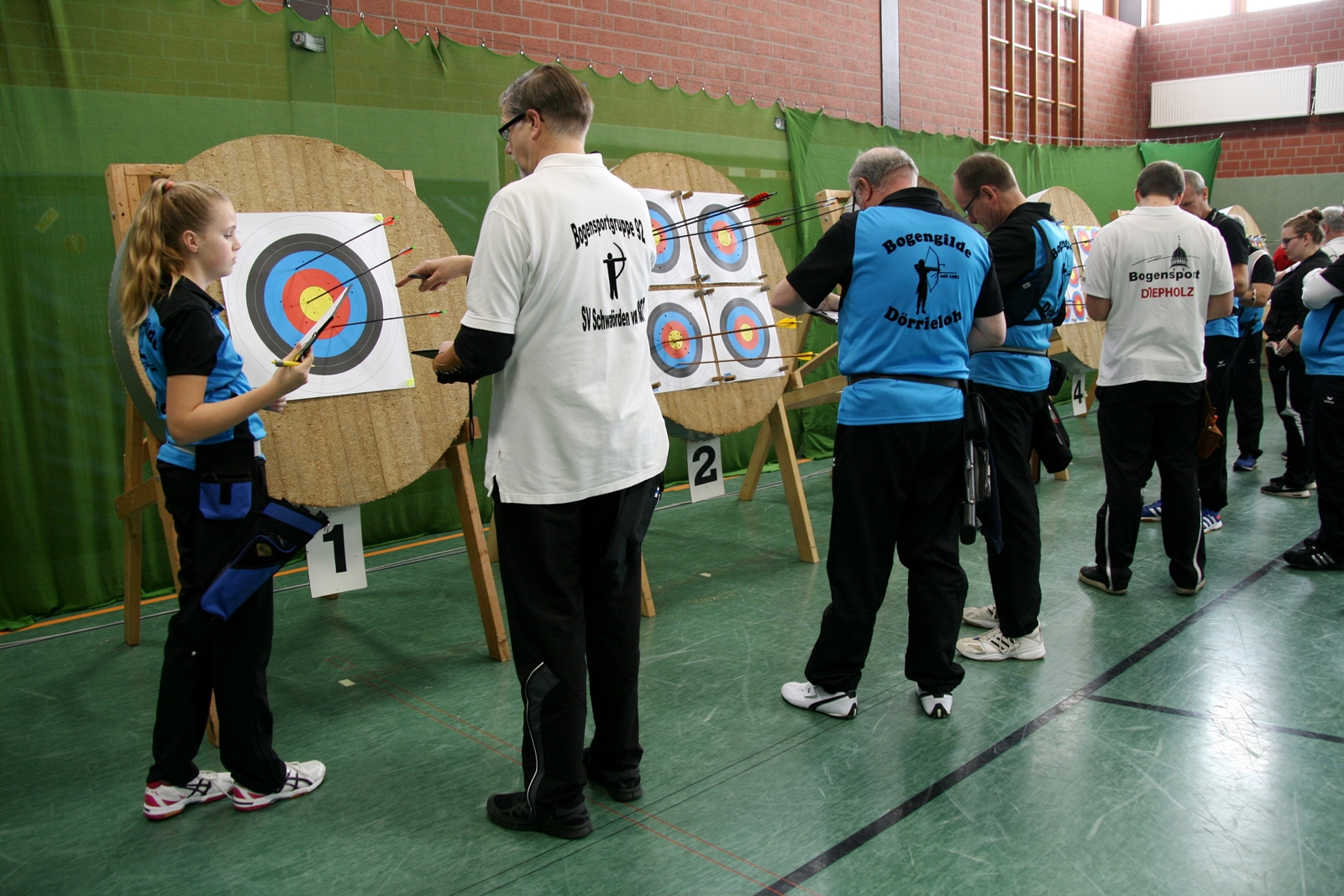 An der diesjährigen Bezirksmeisterschaft nahmen Bogenschützen aus den Vereinen BS Diepholz, Dörrieloh, Klein Lessen und Schwaförden teil. Es beteiligten sich insgesamt 20 Bogenschützen in der Schüler-, Junioren-, Herren-, Herren Alt- und Seniorenklasse an diesem Wettkampf. Jüngste Teilnehmerin war Jessika Emker vom SV Dörrieloh, sie schoss in der Schülerklasse und Maren Maruschewski vom SV Schwaförden, vertrat die Juniorinnenklasse. Der SV Dörrieloh hatte mit acht Bogenschützen die stärkste „Truppe“, es folgte mit sechs Teilnehmern der Bogensport Diepholz.