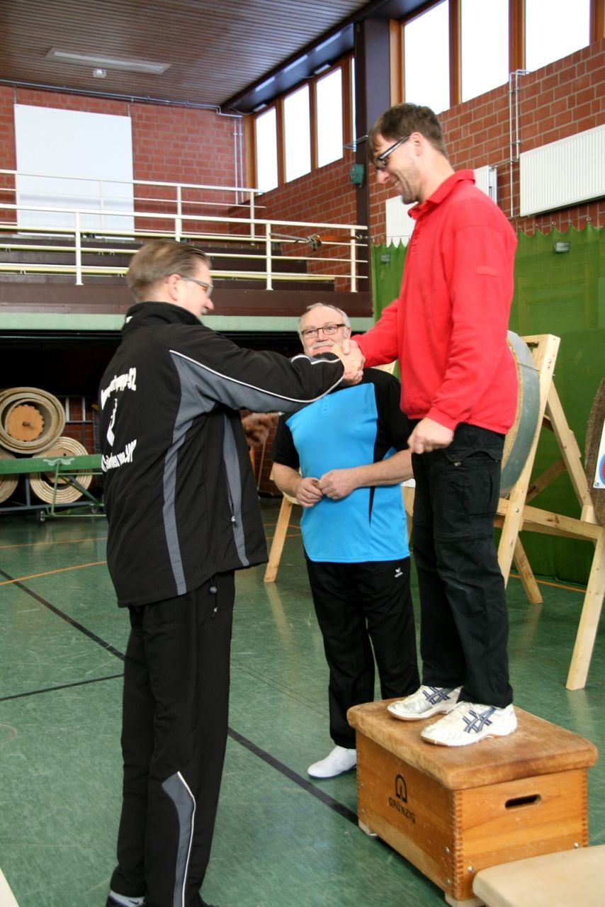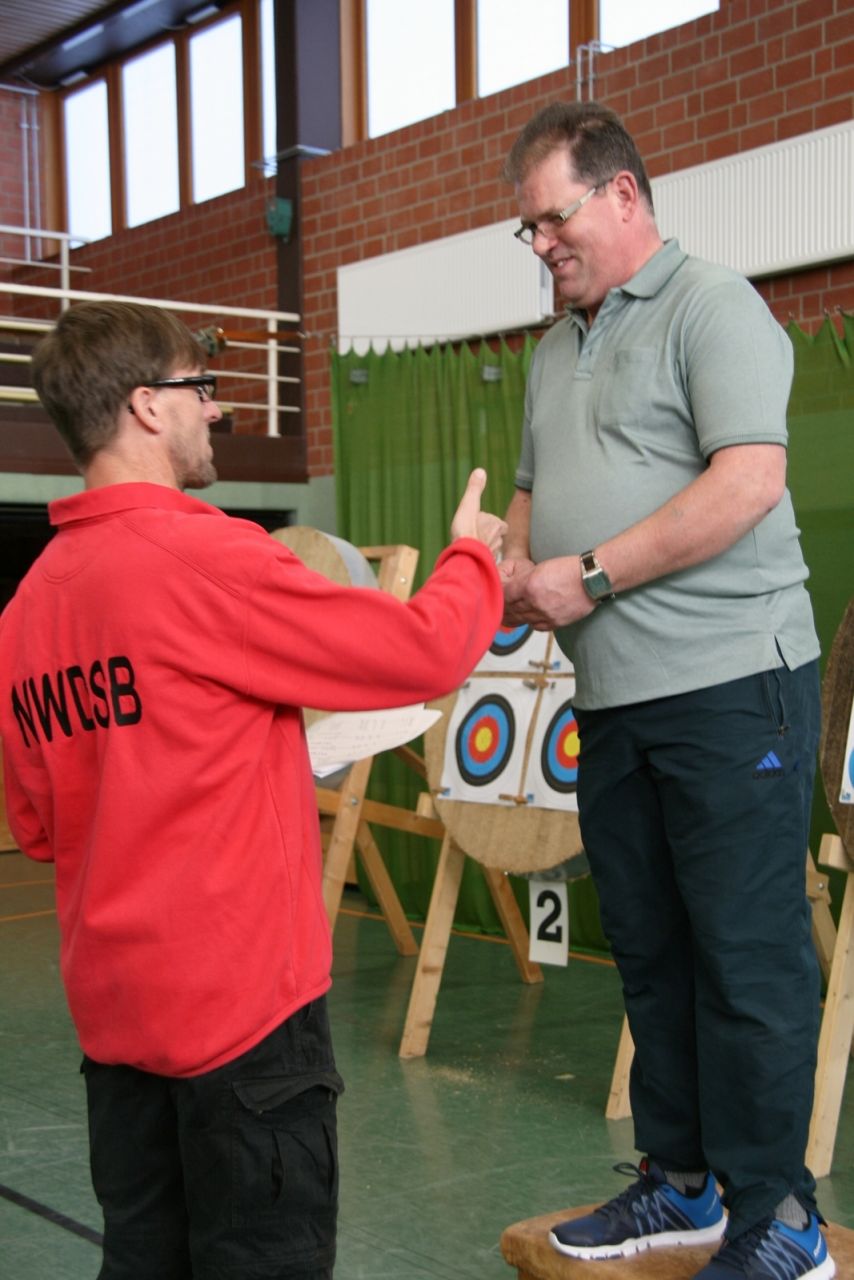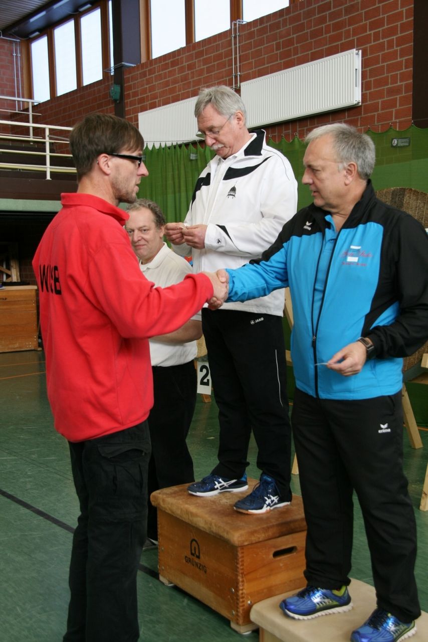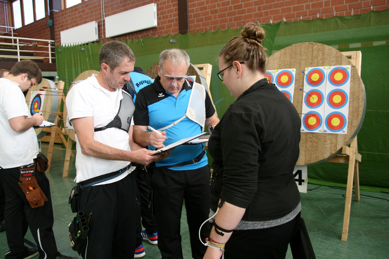 In den Händen von Andreas Schraubek, Bogenreferent des Bezirks, lag die Durchführung der Bezirksmeisterschaft, er fungierte auch als Kampfrichter. Er bediente die Ampel und gab die Kommandos für die jeweiligen Paarungen A-B, C-D. Axel Heemann war für die Auswertung zuständig.