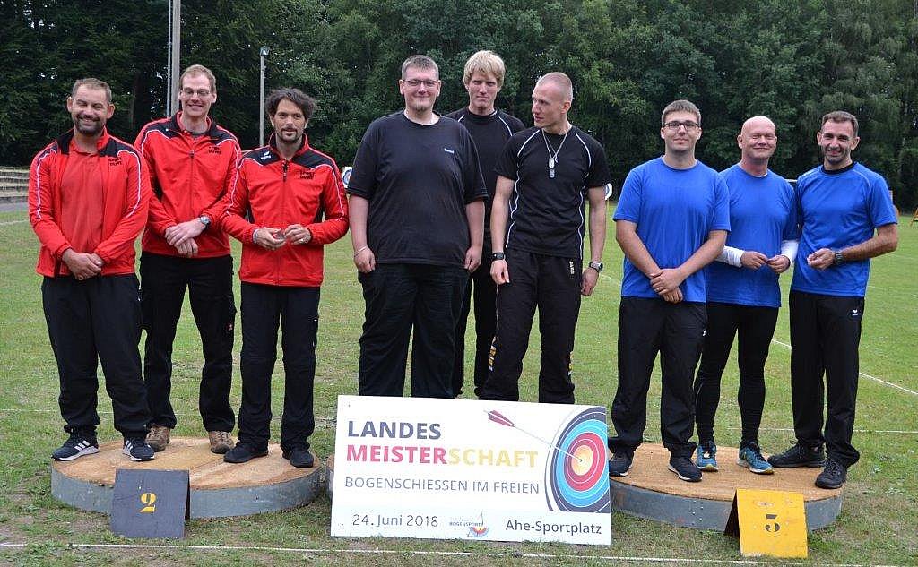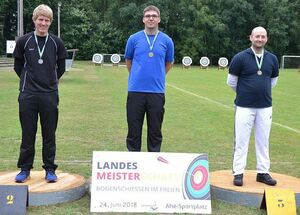 Rechts die siegreiche Mannschaft vom Bogensport Diepholz mit Eike Richter Ingo Jüdes u. David Molitor (von links)