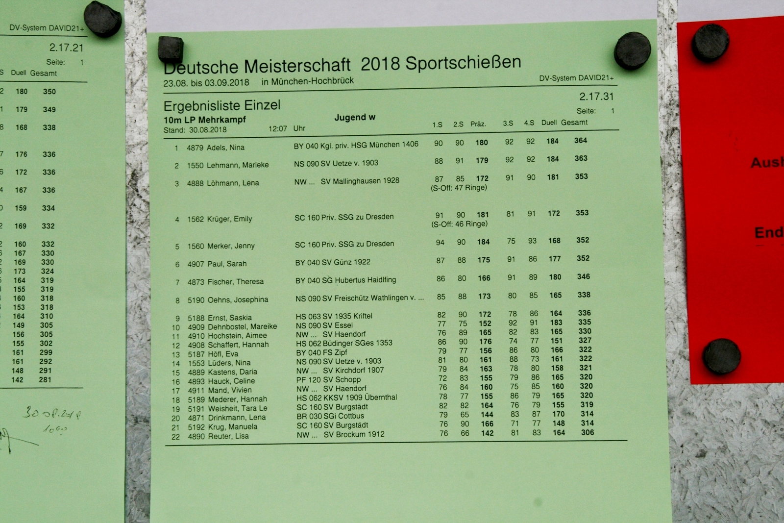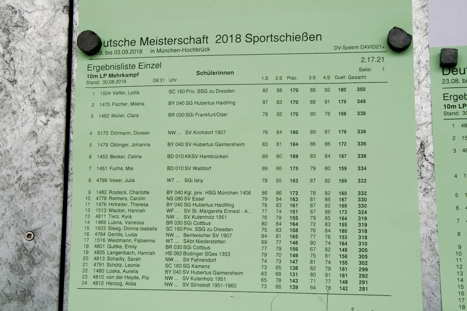 Die Freudentränen nach dem Stechen mit anschließender "Gratulationstour", waren nur natürlich, nach dieser Anspannung - sie hat dieses Stechen bravourös "erledigt". Daria Kastens vom SV Kirchdorf reihte sich in der gleichen Klasse auf Rang 15 ein. Ihre Vereinskollegin Doreen Dörmann hat bei ihrer ersten DM-Teilnahme im LP-Mehrkampf in der Schülerklasse einen hervorragenden 4. Platz belegen können. Lisa Reuter vom SV Brockum konnte ihre Nervosität nicht abstellen und hat dadurch ihre sonst guten Leistungen nicht abrufen können.