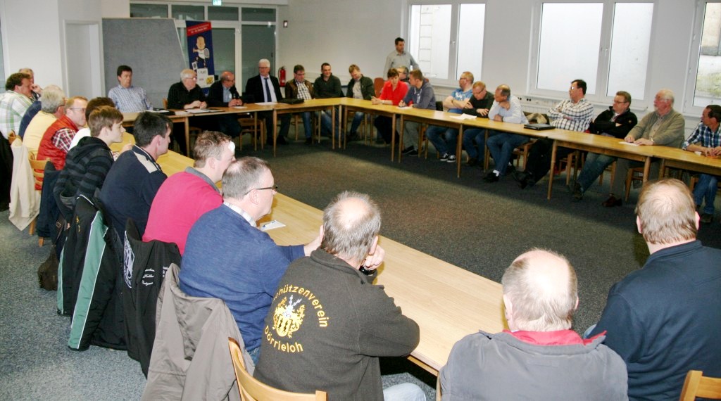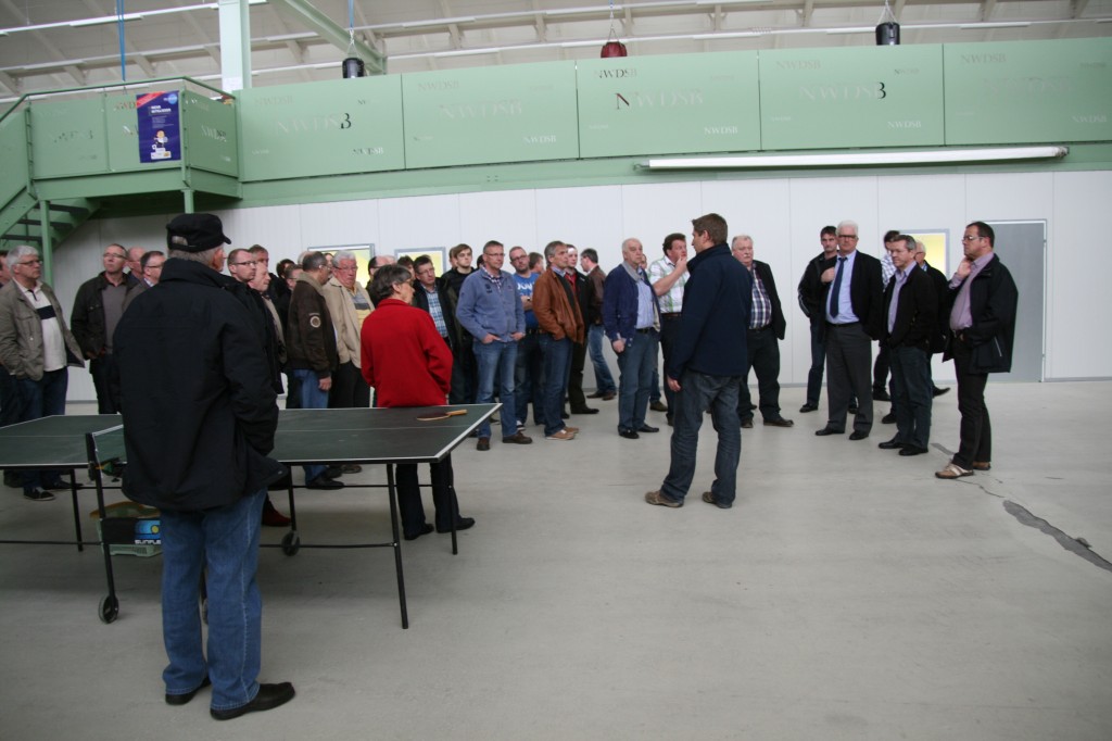 NWDSB-Präsident Jonny Otten begrüsste alle im Namen des NWDSB-Präsidiums recht herzlich zu dieser Infoveranstaltung. In seinen einleitenden Worten sprach er noch einmal eindringlich die Thematik des Schießsports an: "Wir haben die Aufgabe uns Schützen selbst zu stärken, den Schießsport nach vorne zu bringen, damit wir Erfolge haben, nationale und internationale, und wenn es olympische Medaillen gibt, ist das noch besser, das bringt Wirkung, das ist das Einzige was wir von uns zeigen können". Darum haben wir diese Anlage in Anspruch genommen. Kritiker sagen, warum geht ihr nicht nach Hannover, nein Hannover ist total überlastet. Wir wollen hier nationale und internationale Veranstaltungen installieren und durchführen, auch offene Veranstaltungen, offenes Training, offenes Schießen anbieten. Darum müssen wir nun auch fertig werden. Ich weiß und wir haben immer gewusst, dass es nicht in allen Punkten einfach wird, aber wenn wir uns im gesamten NWDSB auf unsere Solidaritätsgemeinschaft besinnen, dann wird es auch gelingen. Werbung ist wichtig, die läuft vorteilhaft mit der Aktion "Ziel im Visier". Wir wissen, dass junge Leute nur über den aktiven Schießsport zu gewinnen sind.