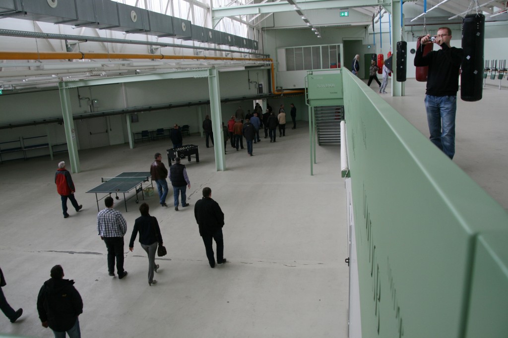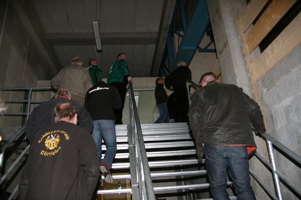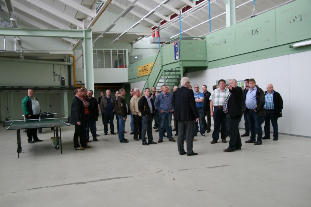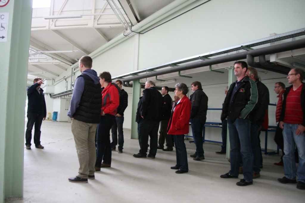 Geschäftsführer Andreas Viebrock übernahm dann die Führung durch das LLZ, eine knappe Stunde dauerte sie. Ein Teil der großen Belüftung konnte man bestaunen, über den Kleinkaliberbahnen war schon eine Trennmauer für die Lüftungsanlage in Arbeit. Die Luftgewehrstände, welche auch für Zimmerstutzen nutzbar sind, die noch nicht fertigen Kleinkaliberbahnen. Der Bogenstand mit seinen transportablen Wänden erklärt, ein abgeschlossener Raum, der im Winter auch erwärmt werden kann. Die sanitären Anlagen passend im Stand verteilt, Übernachtungsmöglichkeiten für Kaderschützen mit Aufenthaltsraum, Duschen usw. Parkplätze gibt es rund um das ganze Gebäude.