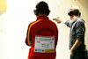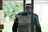 Eine gutgelaunte Karin bei der Waffenkontrolle...