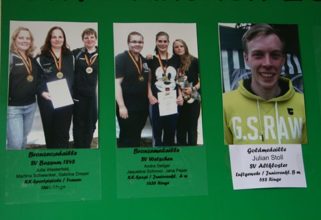 aber auch für den SV Röwekamp schießend, hat mit ihrer Mannschaft, bestehend aus Rita Müller und Helene Rolfes, die Goldmedaille in der Disziplin Luftpiste Damen Alt gewonnen.