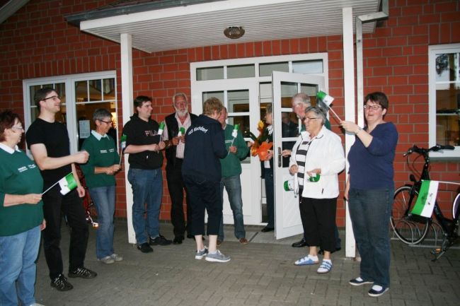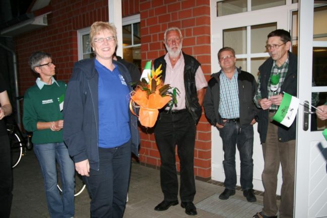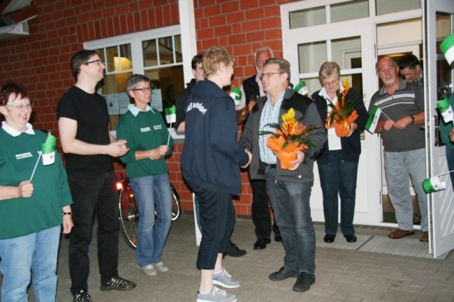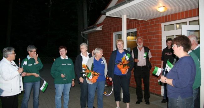 In der Heimat angekommen, wurden Karin Husmann u. ihre "Daumendrückerin" Marianne Vallan am Dienstagabend, dem 27. August, vor der Schützenhalle des SV von 1848 Sulingen von Vereinsmitgliedern des SV von 1848 Sulingen herzlich empfangen.