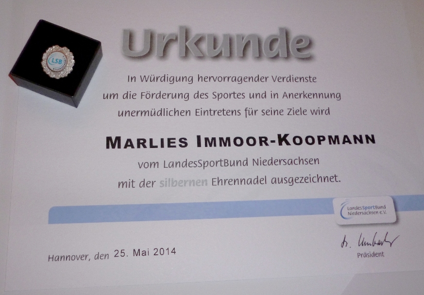 So sieht die Urkunde und Nadel aus, dieses sollte auch mit ein Ansporn sein, ein Ehrenamt zu übernehmen...