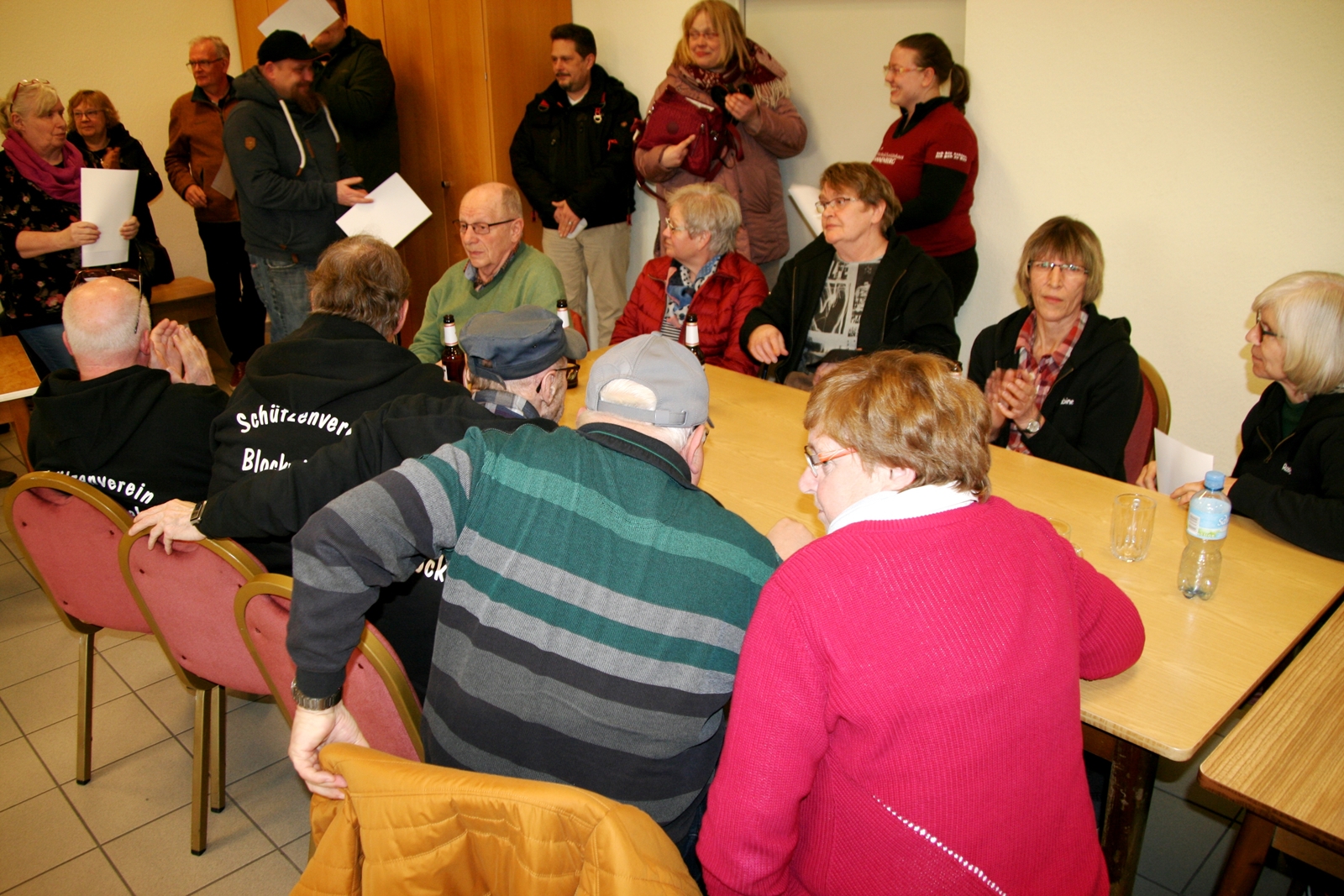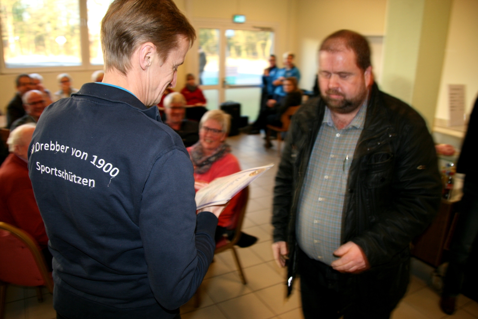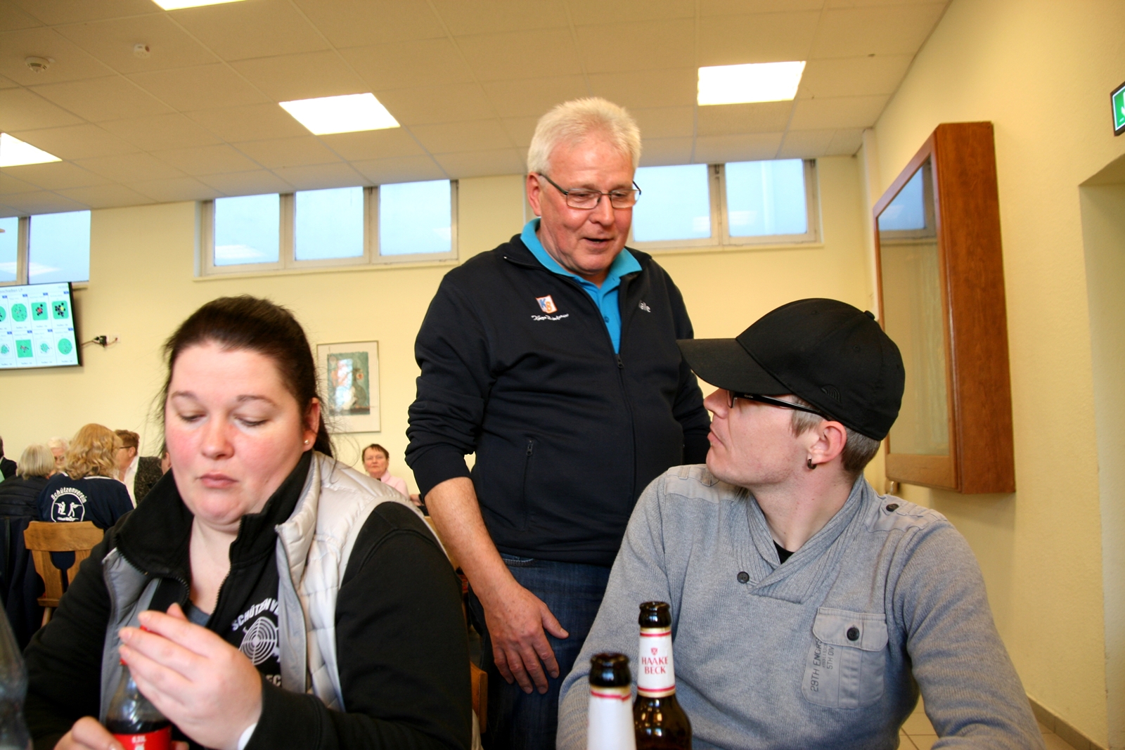 Alles wartete gespannt, als Marco Thies Referent für Breitensport die Ergebnisse des Landeskönigsschießens bekannt gab und der ein oder andere Teilnehmer hoffte sicherlich, dass sein Name ziemlich am Ende genannt werden würde. Diejenigen, welche nun wissen, dass sie unter den ersten Drei in den einzelnen Altersklassen vertreten sind, müssen sich nun bis zum Landeskönigsball am 6. April in Osterholz-Scharmbeck gedulden, denn erst dort wird dann das Geheimnis gelüftet, welchen Titel sie bekommen. Noch Landesalterskönigin Helga Friemel vom SV Melchiorshausen (Bremen), gratulierte ihnen mit als Erste. Sie erinnere sich noch genau an den Tag des vergangenen Jahres, als sie mit Herzklopfen auf die Ergebnisse gewartet hätte und sie wünschte den "Eingeladenen" viel Spaß beim Landeskönigsball, egal mit welchem Titel.