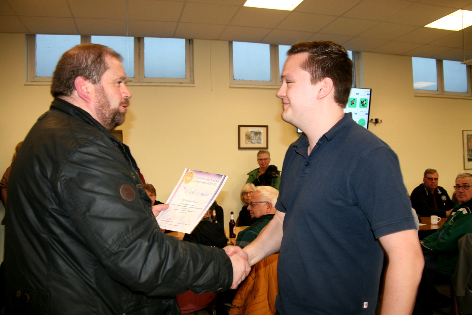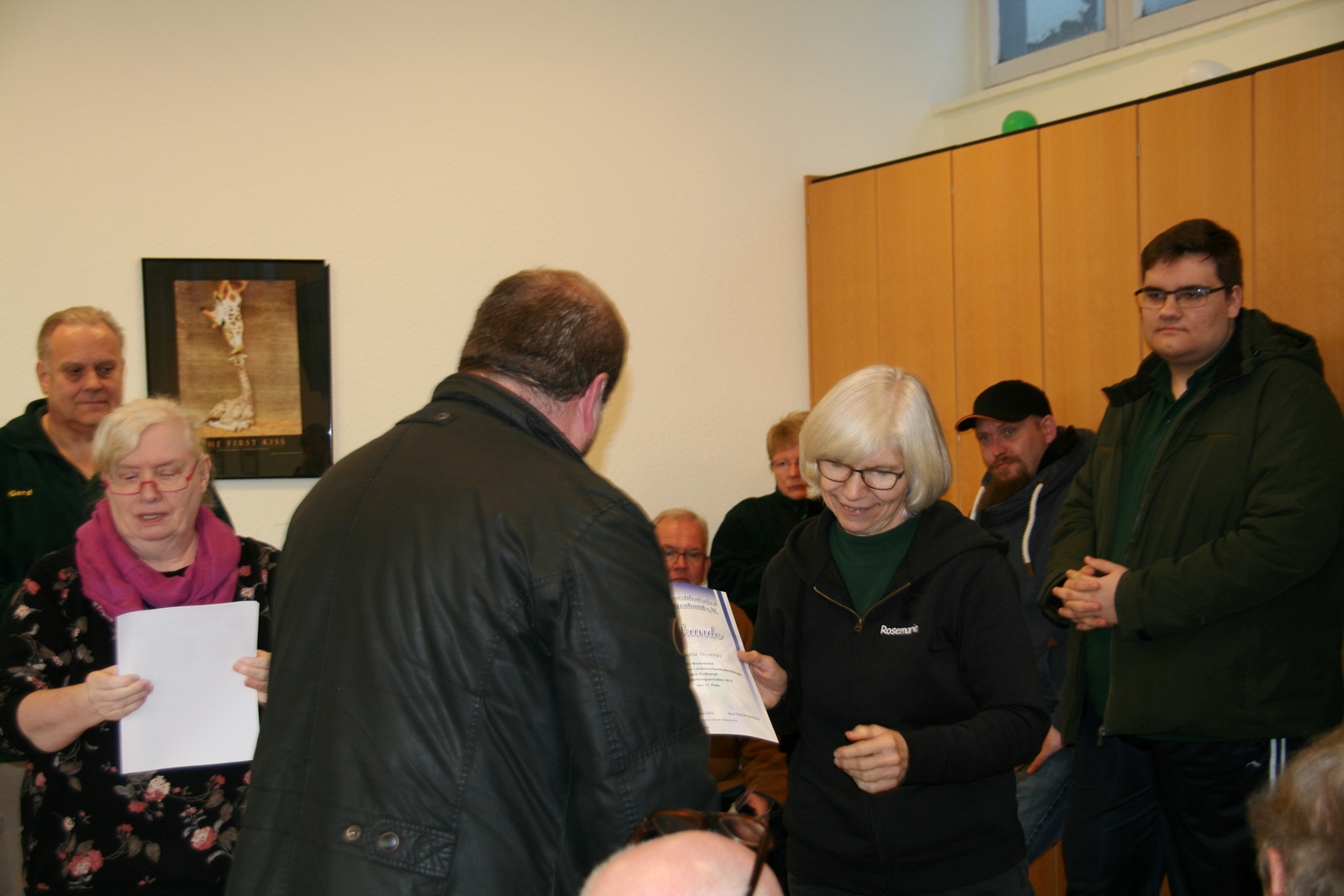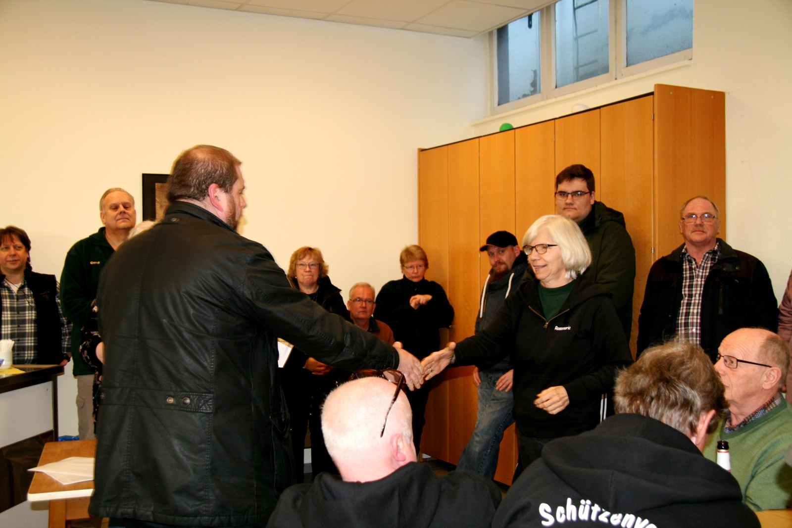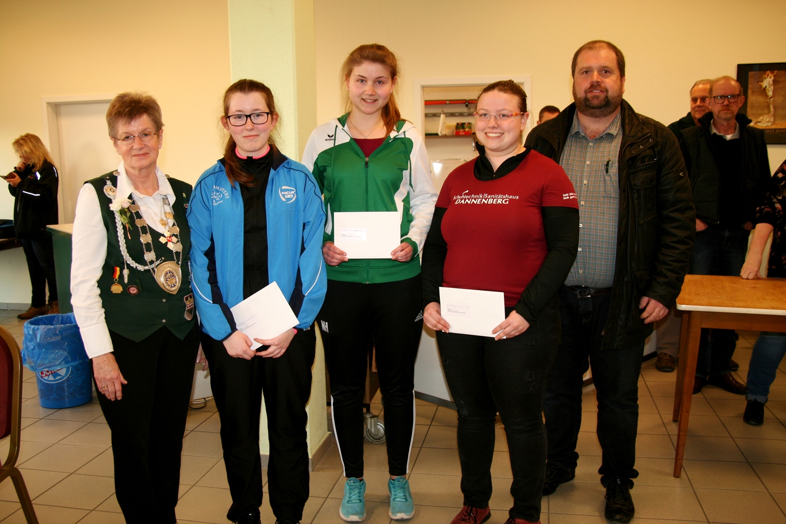 Alles wartete gespannt, als Marco Thies Referent für Breitensport die Ergebnisse des Landeskönigsschießens bekannt gab und der ein oder andere Teilnehmer hoffte sicherlich, dass sein Name ziemlich am Ende genannt werden würde. Diejenigen, welche nun wissen, dass sie unter den ersten Drei in den einzelnen Altersklassen vertreten sind, müssen sich nun bis zum Landeskönigsball am 6. April in Osterholz-Scharmbeck gedulden, denn erst dort wird dann das Geheimnis gelüftet, welchen Titel sie bekommen. Noch Landesalterskönigin Helga Friemel vom SV Melchiorshausen (Bremen), gratulierte ihnen mit als Erste. Sie erinnere sich noch genau an den Tag des vergangenen Jahres, als sie mit Herzklopfen auf die Ergebnisse gewartet hätte und sie wünschte den "Eingeladenen" viel Spaß beim Landeskönigsball, egal mit welchem Titel.