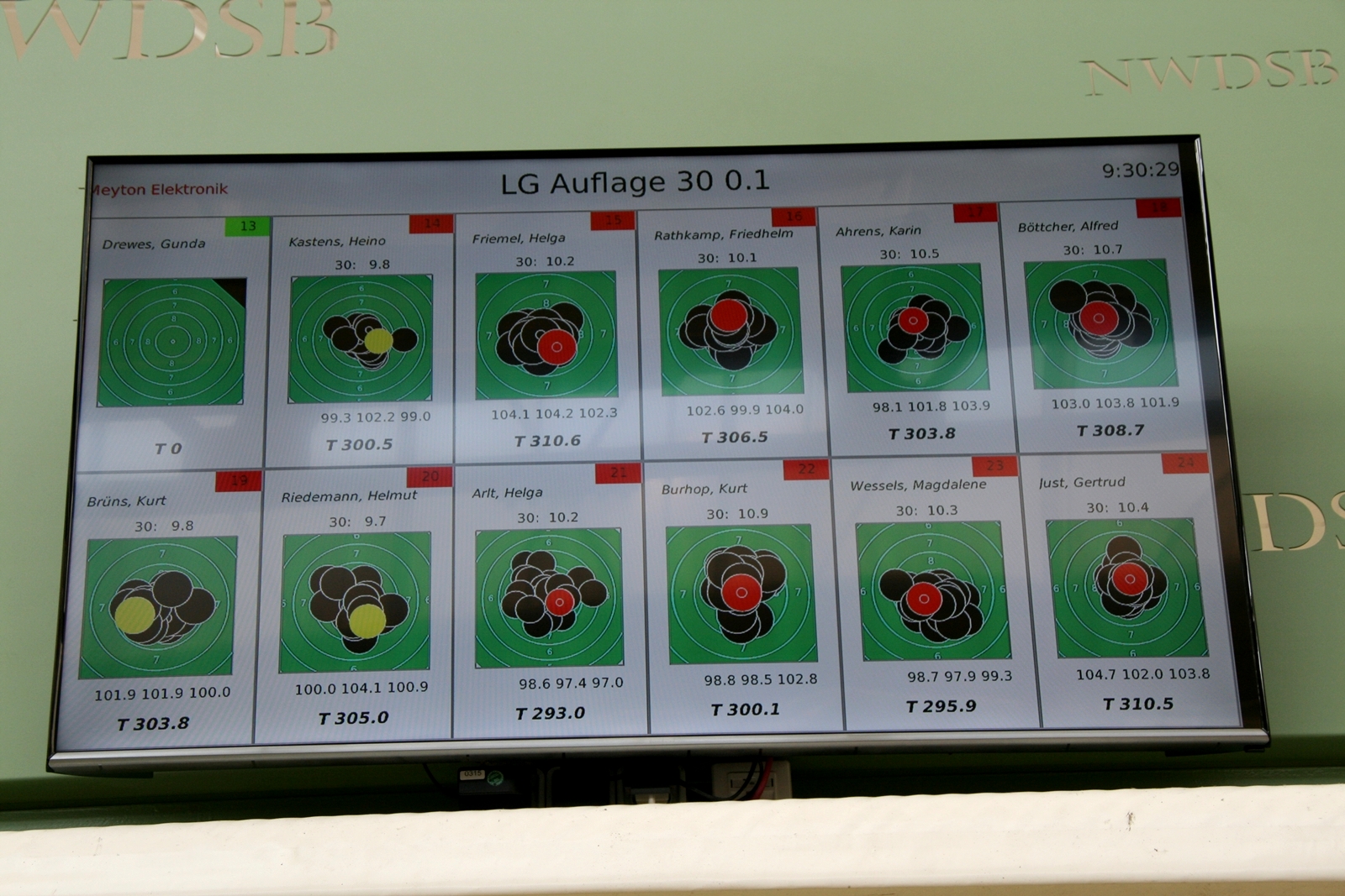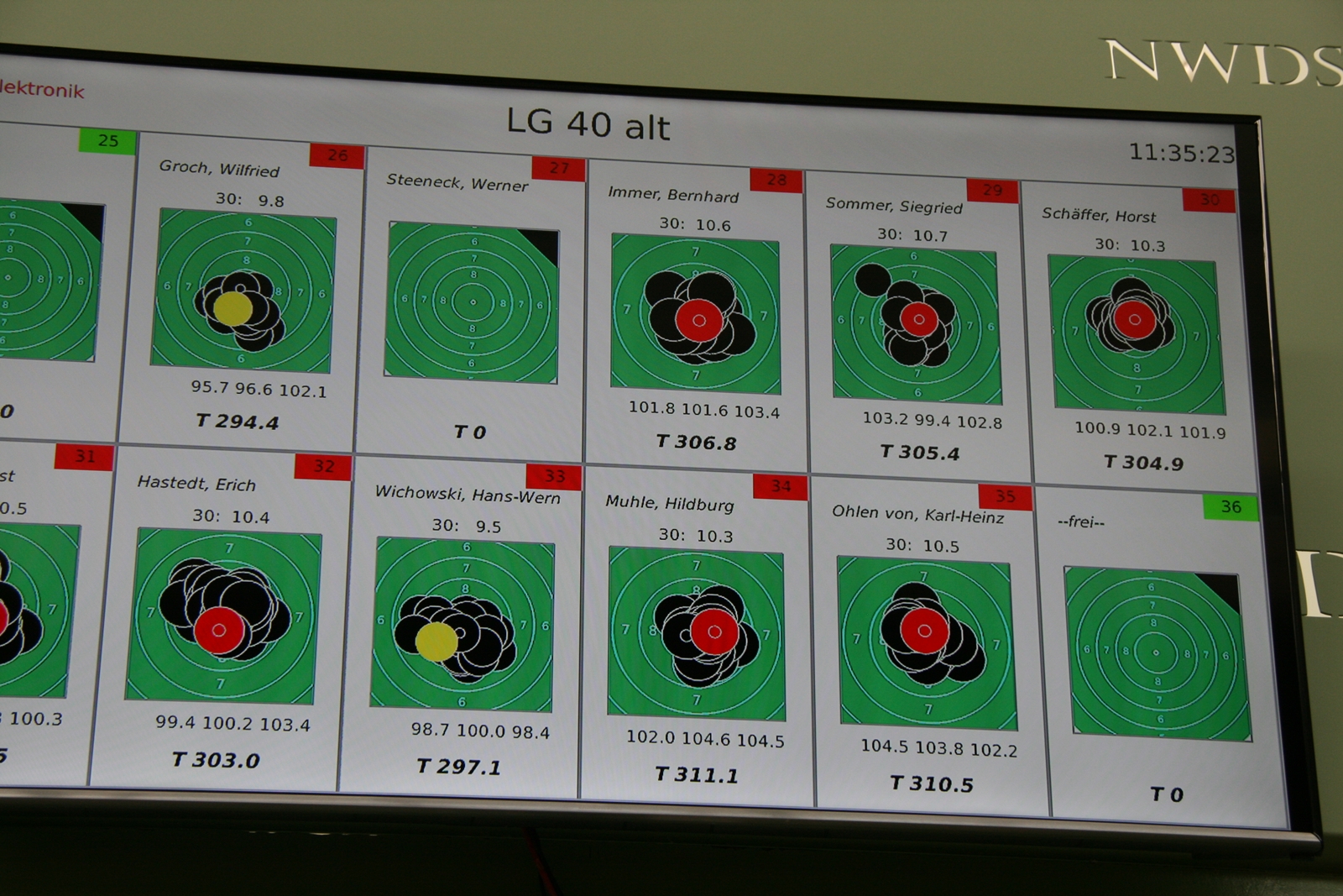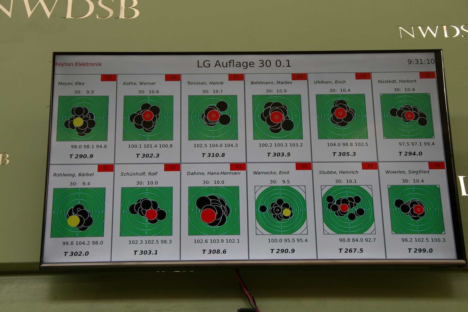 Die "Siegerehrungsleinwand" des NWDSB wurde an diesem Tag nicht als "Hintergrund" für unsere Schützen genutzt, in diesem Jahr gingen sie leer aus. Aber einige sind doch guter Hoffnung, dass es für die "Deutsche" in Dortmund reichen wird. Es ist schon sehr ungewohnt, die Ergebnisse in Zehntelwertung für weitere Wettkämpfe einzuschätzen.