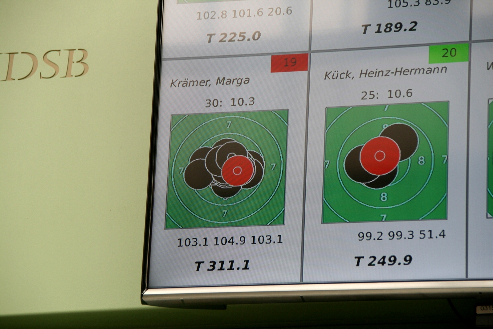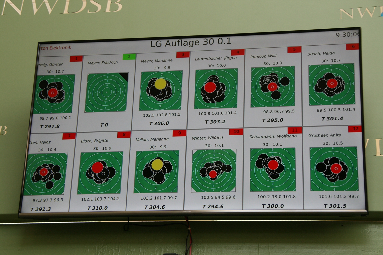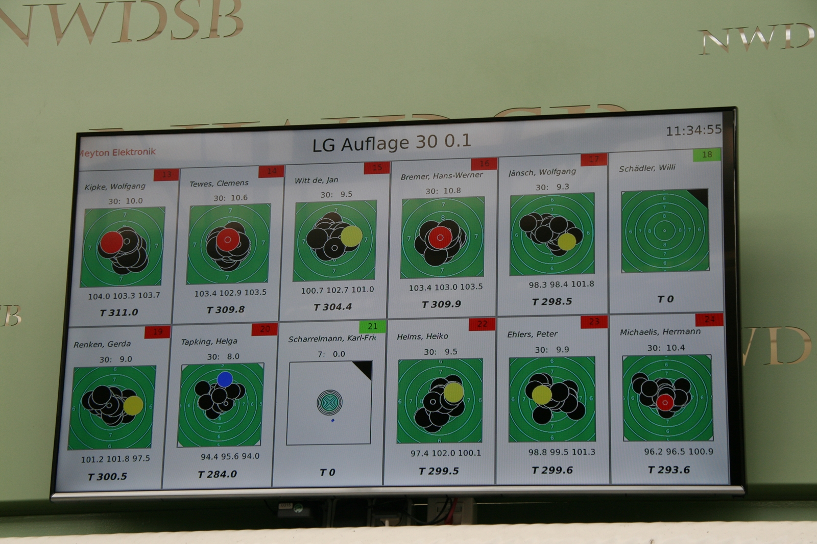 Die "Siegerehrungsleinwand" des NWDSB wurde an diesem Tag nicht als "Hintergrund" für unsere Schützen genutzt, in diesem Jahr gingen sie leer aus. Aber einige sind doch guter Hoffnung, dass es für die "Deutsche" in Dortmund reichen wird. Es ist schon sehr ungewohnt, die Ergebnisse in Zehntelwertung für weitere Wettkämpfe einzuschätzen.