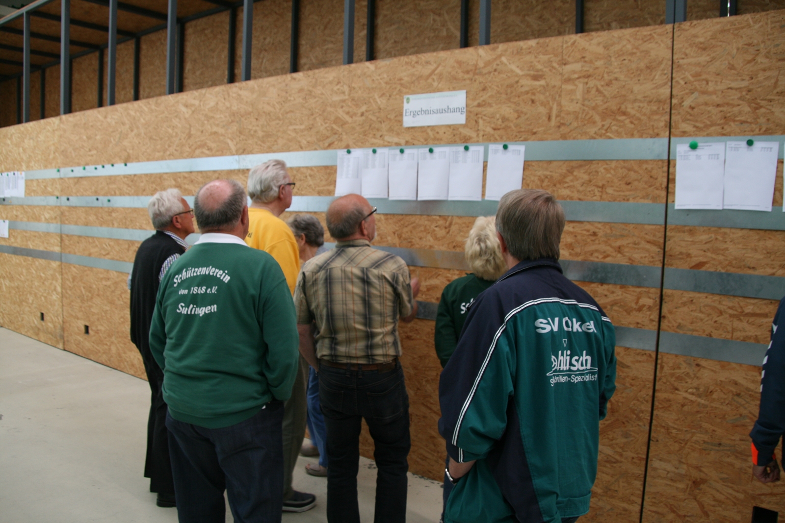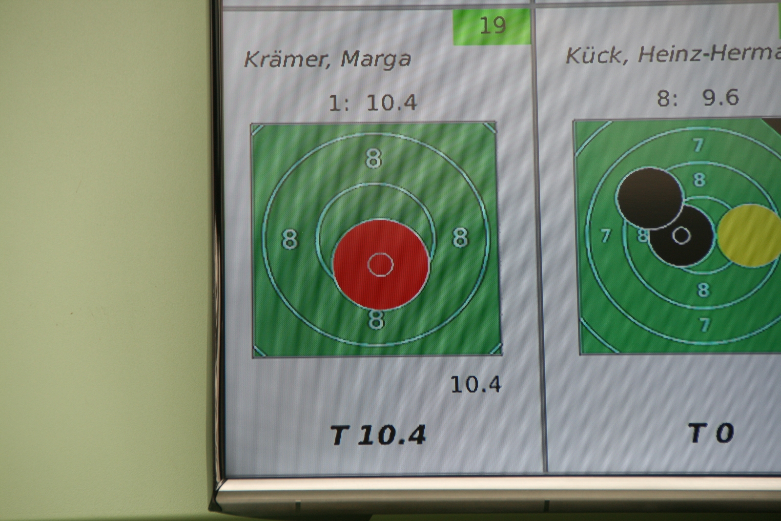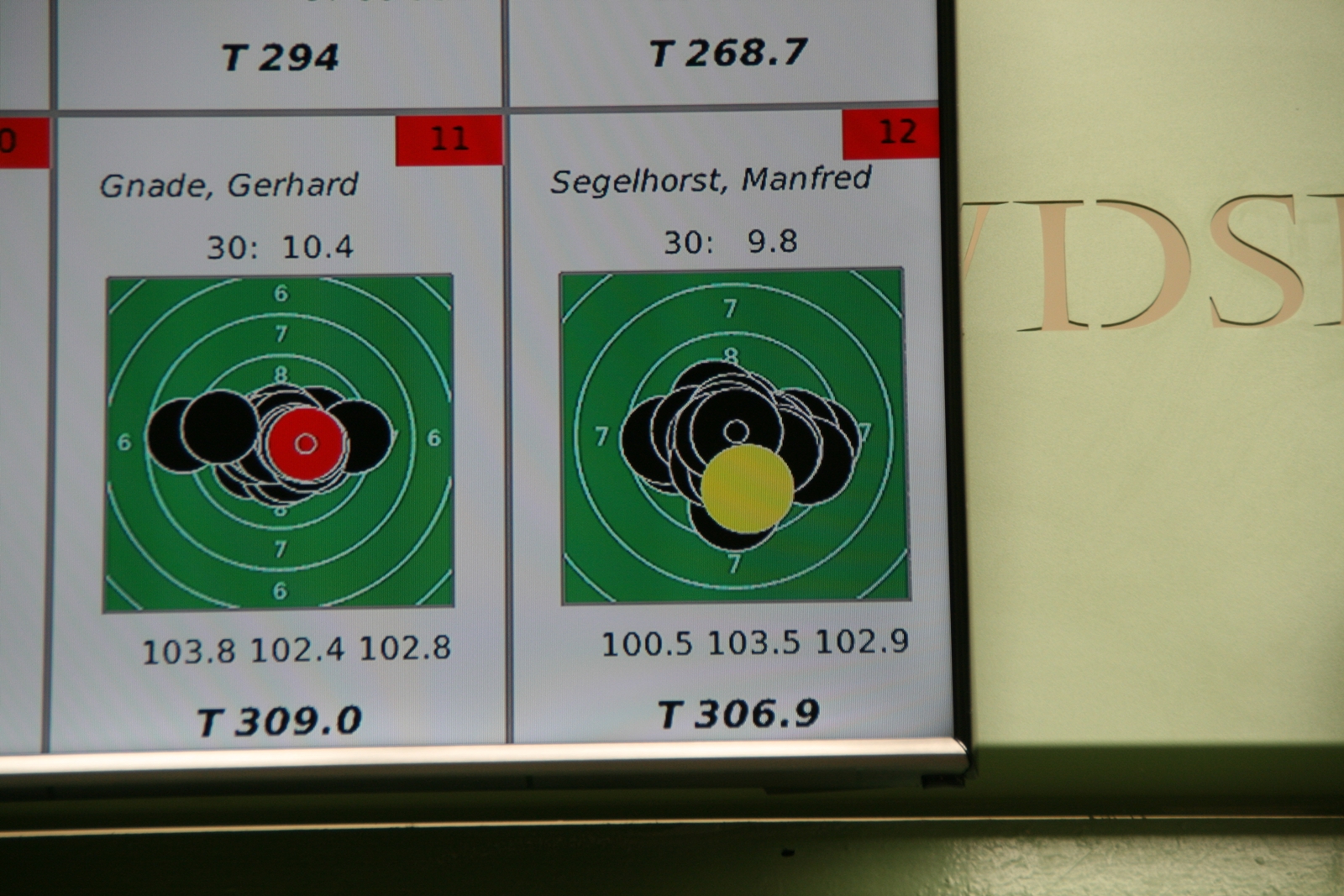 Pech hatte unser Präsident Karl-Friedrich Scharrelmann, sein Gewehr machte ihm einen "Strich" durch die "Rechnung". Kein Schuss fand den Weg ins Zentrum, auch das Wechseln der Kartusche half nichts, da man glaubte sie sei leer, dem war aber nicht so. Er gab den Wettkampf auf, denn die Zeit reichte für ein ordentliches Ergebnis, auch mit einem anderen Gewehr, nicht aus.